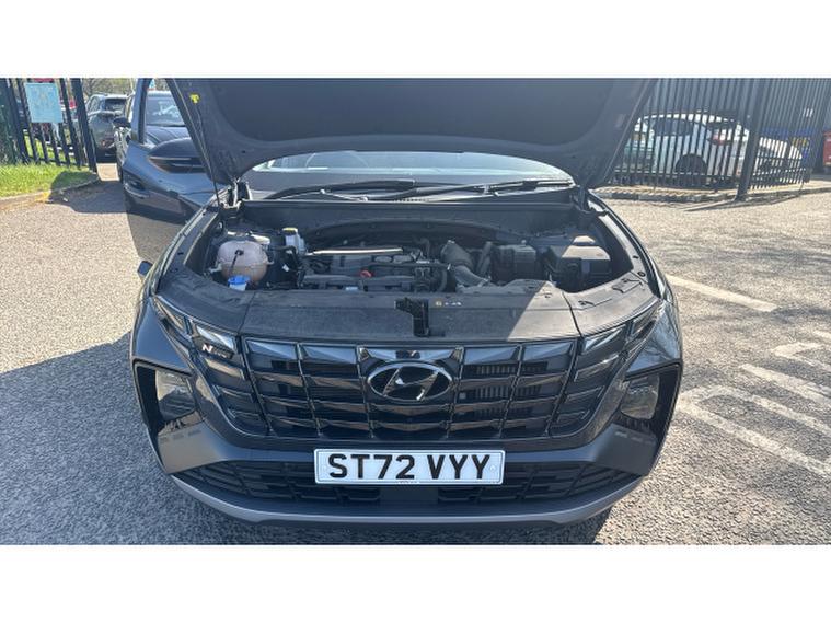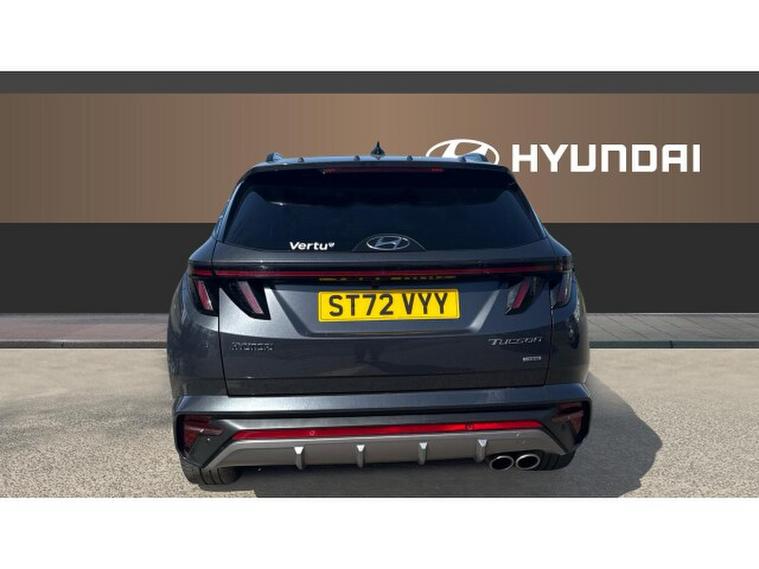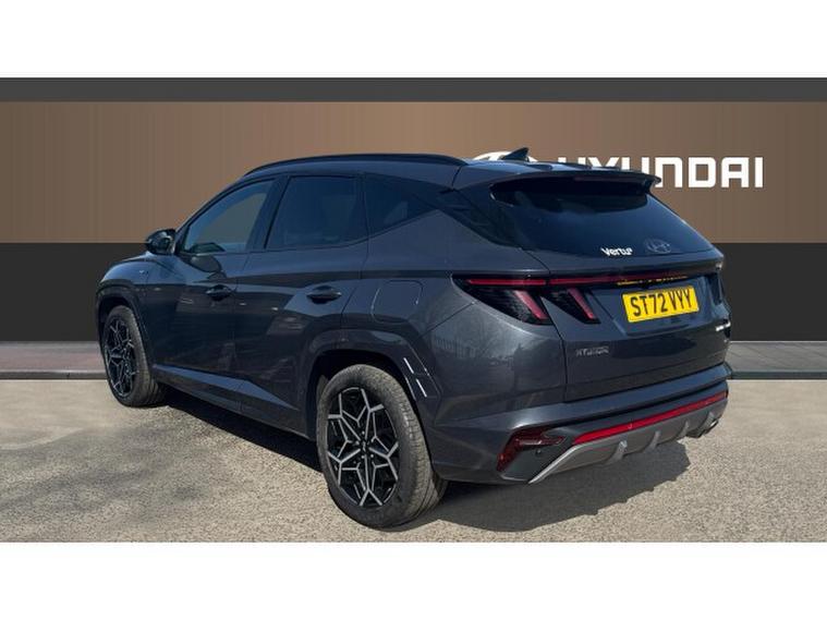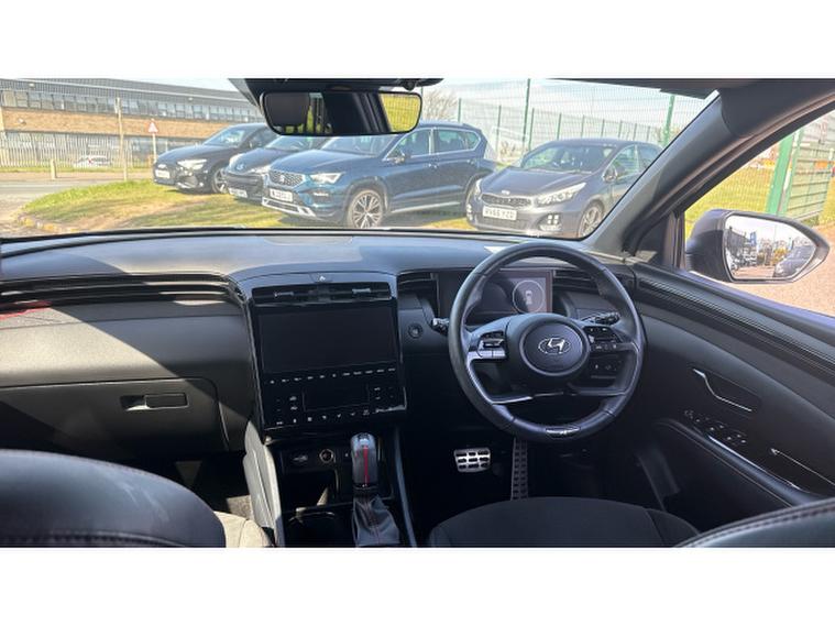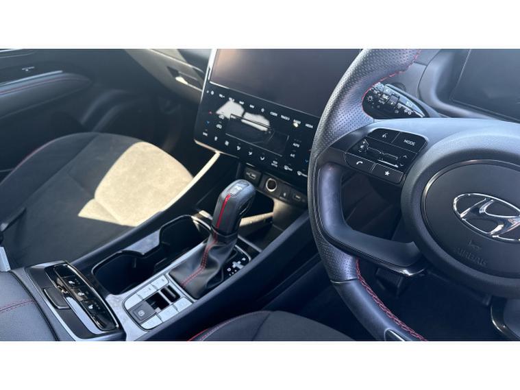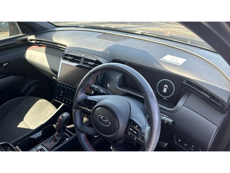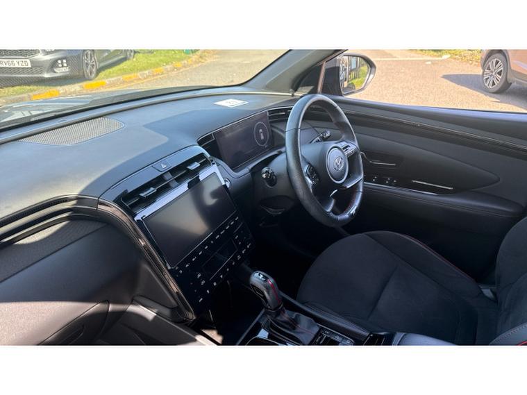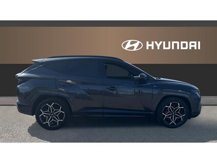Hyundai Tucson 1.6 TGDi 48V MHD 180 N Line S 5dr 4WD DCT Petrol Estate, , The Hyundai Tucson 1.6 T-GDi 180 N-Line S AWD automatic, finished in stylish grey metallic with N-Line Alcantara sports trim, delivers a dynamic blend of performance and premium comfort. It stands out with striking diamond-cut N-Line alloy wheels and a panoramic glass sunroof that enhances the spacious, sporty interior. Heated front seats and a heated steering wheel provide added comfort, while climate control ensures the perfect cabin temperature year-round. Technology is well covered with Apple CarPlay, Android Auto, DAB radio, and seamless connectivity, alongside keyless entry and start-stop functionality for everyday convenience. Safety and ease of driving are enhanced with auto headlights, lane departure warning and lane assist, plus park assist with a rear camera and power-folding mirrors, making this a well-rounded and engaging SUV for any journey.