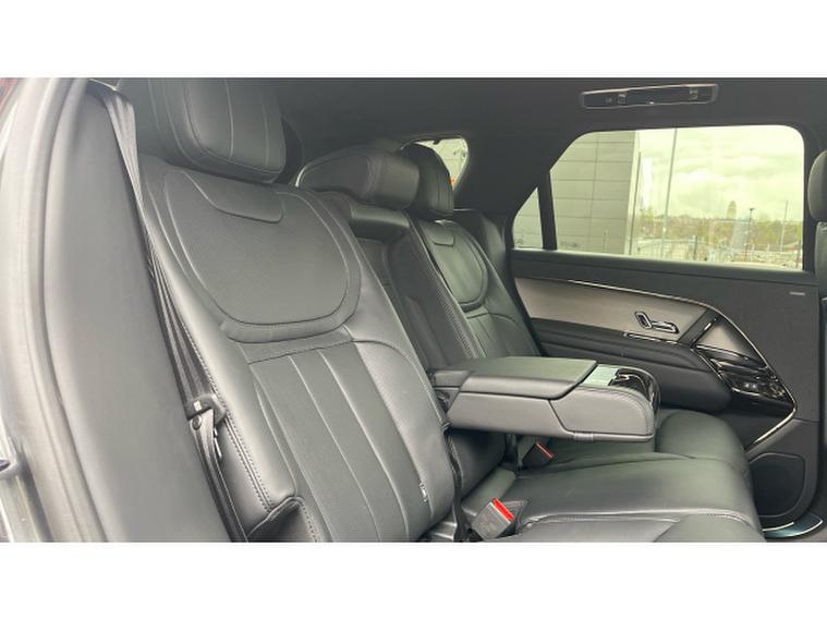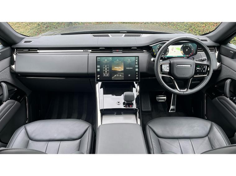 Inside, the cabin showcases true Range Rover luxury with Ebony Windsor leather seats, creating a premium and comfortable environment for both driver and passengers. A fixed panoramic roof floods the interior with natural light, enhancing the sense of space and refinement.