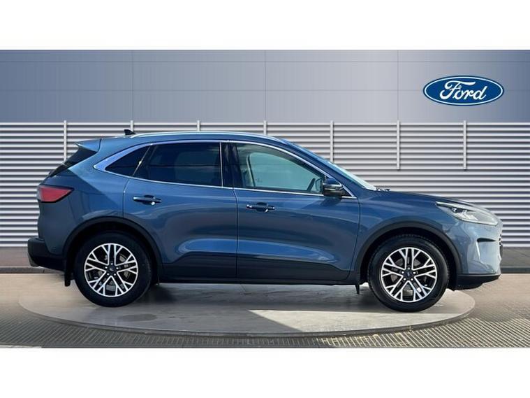 Ford Kuga 1.5 EcoBoost 150 Titanium 5dr Petrol Estate, , Gloucester Ford have this 2 owner from new Ford Kuga 1.5 EcoBoost 150 Titanium finished in Chrome Blue. This Kuga 1.5 EcoBoost 150 Titanium in Chrome Blue is a stylish, practical, and well-equipped SUV that offers an excellent balance of performance, comfort, and everyday usability. Powered by a responsive 1.5-litre EcoBoost petrol engine producing 150PS, it delivers smooth acceleration and confident driving whether in the city or on longer motorway journeys. The Titanium trim level enhances the driving experience with a premium feel throughout. The exterior in Chrome Blue gives the vehicle a modern and eye-catching presence, while the sleek design and refined detailing make it stand out on the road. Inside, the cabin is spacious, comfortable, and thoughtfully designed, offering high-quality materials and advanced technology for both driver and passengers. One of the standout features of this model is its advanced driver assistance technology. Front and rear parking sensors, combined with a rear-view camera, make manoeuvring and parking effortless, even in tight urban spaces. These features provide added confidence and safety, ensuring greater awareness of surroundings at all times. In addition, the Kuga offers impressive practicality, with generous boot space and flexible seating, making it ideal for families, commuting, or weekend trips. Modern infotainment systems, including touchscreen connectivity and smartphone integration, ensure every journey is enjoyable and connected. Overall, the Ford Kuga 1.5 EcoBoost 150 Titanium is a well-rounded and reliable SUV that blends performance, technology, and comfort. With its attractive styling, smart safety features, and everyday versatility, it represents an excellent choice for drivers seeking a dependable and refined vehicle.