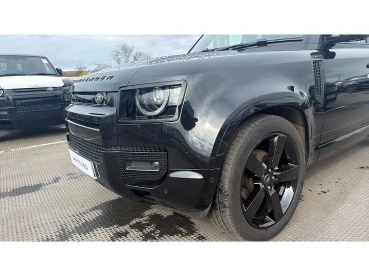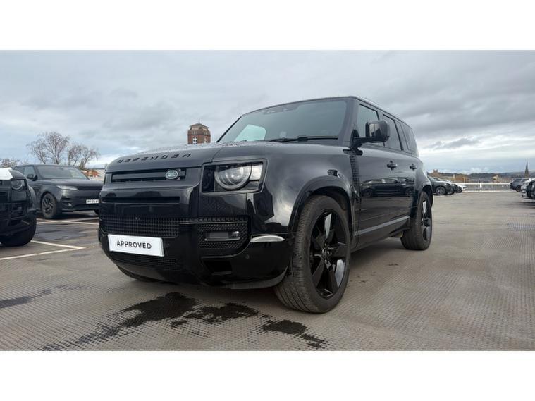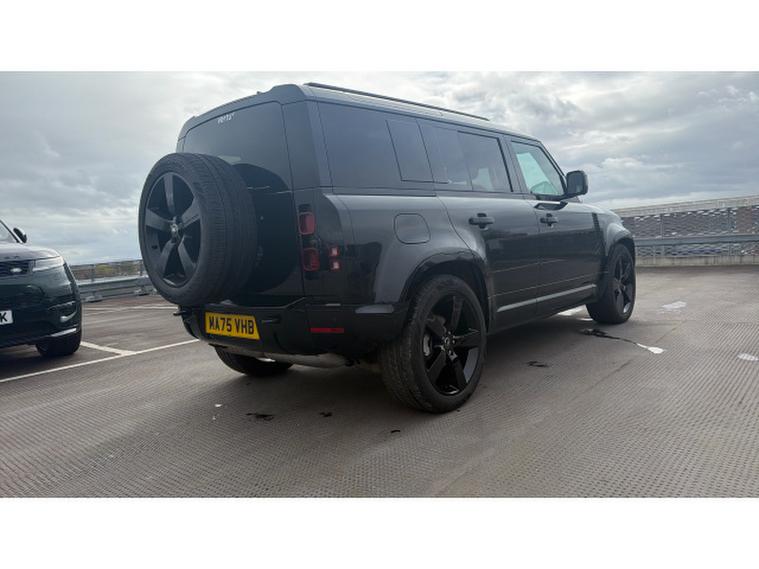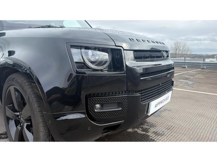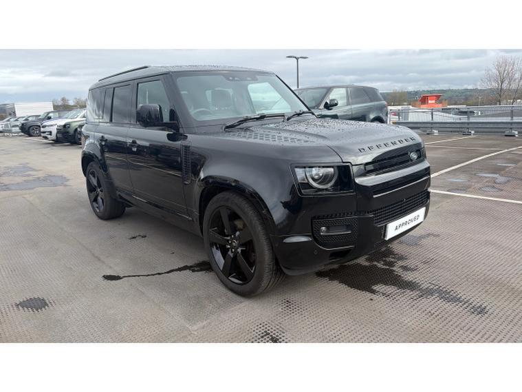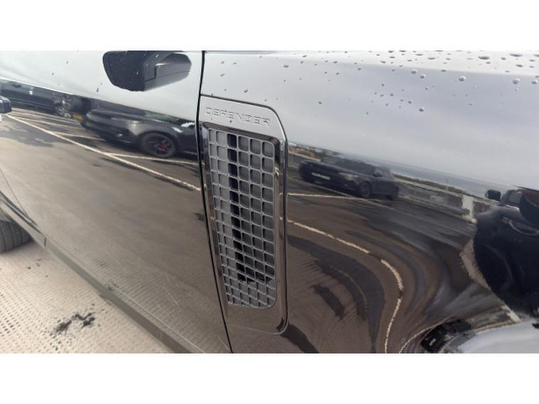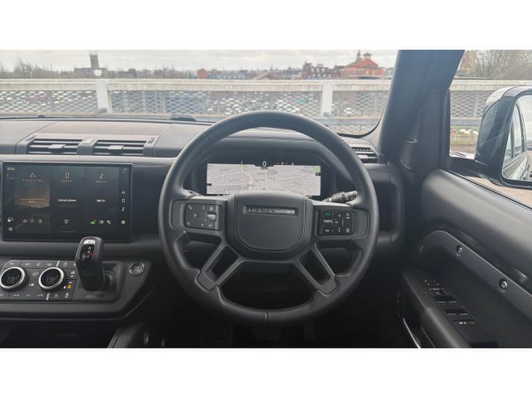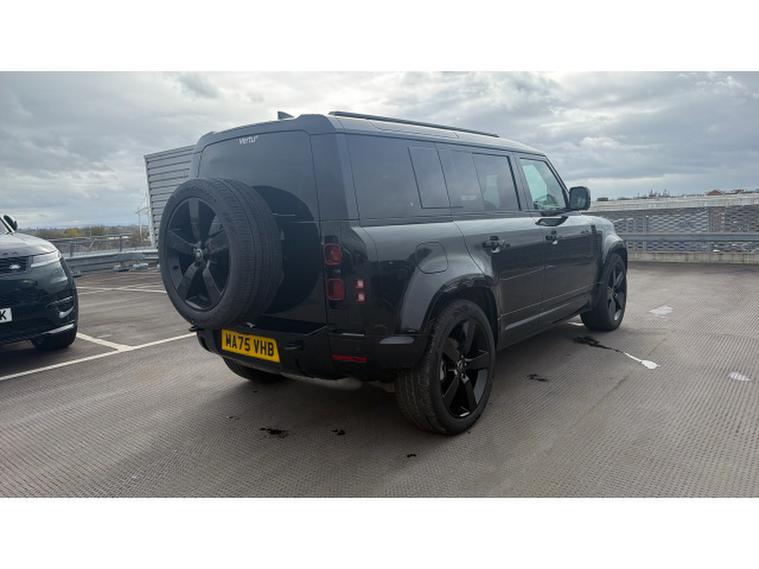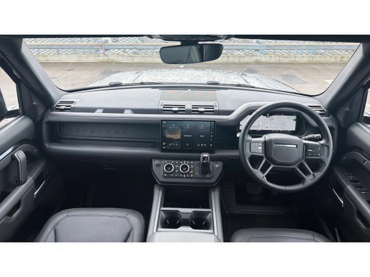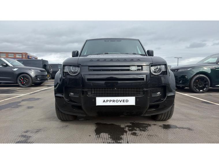 Land Rover Defender 3.0 D250 X-Dynamic HSE 110 5dr Auto Diesel Estate, , Vertu JLR Bolton are proud to offer this stunning Defender 3.0 D250 X-Dynamic HSE 110 finished in the beautiful Santorini Black metallic with ebony grained leather interior. This car is packed full of optional features which include Air suspension pack, 22 inch gloss black alloys with full size spare wheel, cross car beam, in dark grey, front centre console refrigeration, and extended black pack, . Standard features include 11.4 inch touchscreen with Pivi Pro Navigation, 3D surround camera, cooled and heated electric memory seats, sliding glass panoramic sunroof, interactive driver display, adaptive cruise control, dual zone climate control, heated steering wheel, LED headlights, auto lights and wipers, Apple car play, parking sensors, keyless entry, Meridian sound system, sliding glass panoramic sunroof, push button start, terrain response, hill descent control, configurable interior lighting, remote central locking, steering wheel audio controls, blind spot monitor, interactive driver display, Bluetooth, DAB radio, power fold mirrors, cubby box, and much more. This car is ready to view, test drive and drive away today and comes as part of the Approved JLR programme and comes with balance of manufacturer warranty and roadside assistance until September 2028, MOT test warranty, 165 multi point inspection and complimentary experience day as part of purchase.