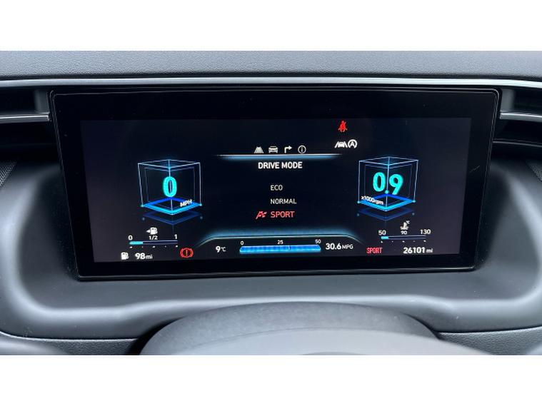 Powered by the responsive 1.6-litre turbocharged petrol engine producing around 150PS, the Tucson delivers smooth and capable performance while maintaining good fuel efficiency, making it ideal for both city driving and longer motorway journeys.