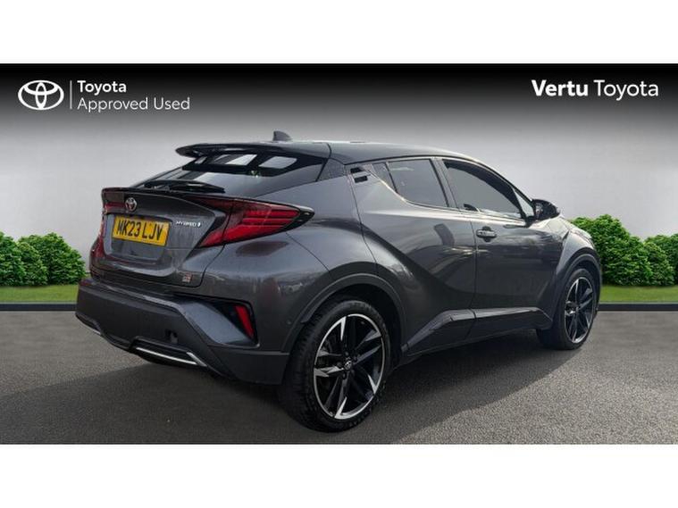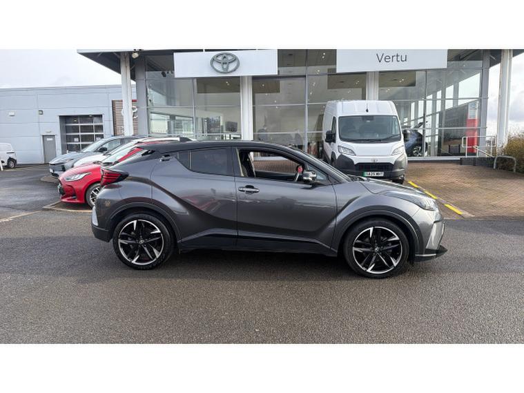 Toyota C-HR 1.8 Hybrid GR Sport 5dr CVT Hybrid Hatchback, , Step into standout style and cutting-edge efficiency with this Toyota C-HR 1.8 Hybrid GR Sport, finished in the stunning Decuma Grey Bi-tone metallic paintwork that perfectly complements its bold, coupe-inspired design. With just 17, 361 miles on the clock, this low-mileage example offers an exceptional blend of performance and economy thanks to its advanced self-charging hybrid systemdelivering smooth, responsive driving with impressive fuel efficiency. The GR Sport trim elevates the experience with sport-tuned suspension, striking alloy wheels, distinctive GR styling details, and a premium interior featuring supportive sports seats and high-quality finishes throughout. Packed with intelligent technology, youll enjoy a seamless drive with features such as a touchscreen infotainment system, smartphone integration, reversing camera, adaptive cruise control, and Toyota Safety Sense for complete peace of mind. Plus, benefit from Toyotas incredible 10-year service-activated warranty, giving you long-term confidence and reassurance with every journey. This is not just a carits a statement in style, innovation, and reliability.