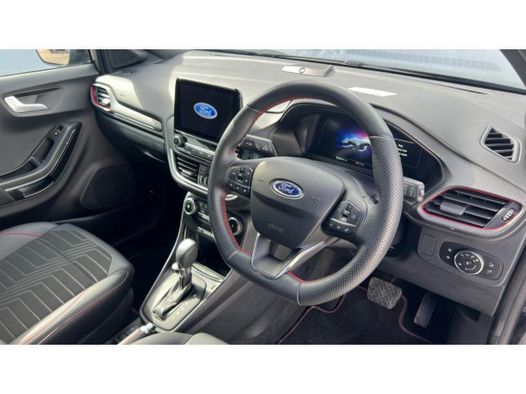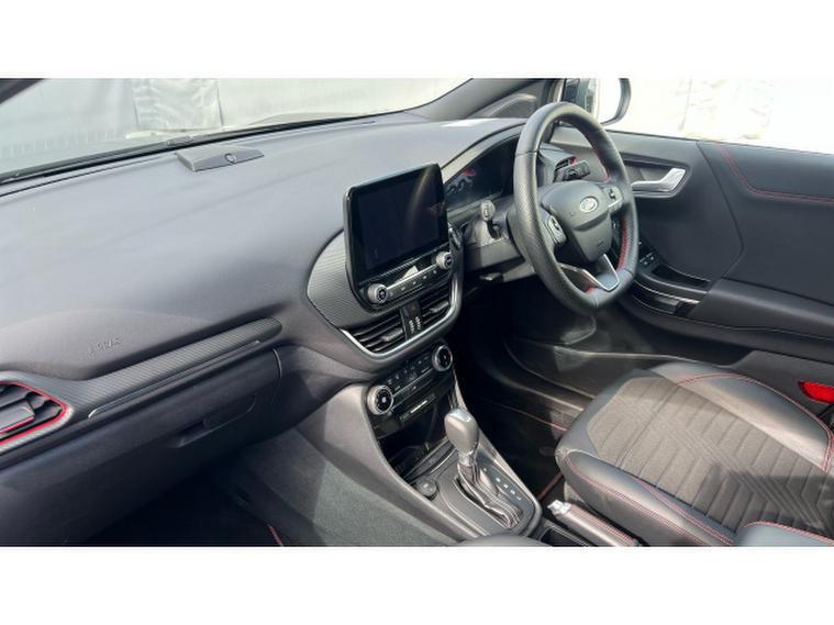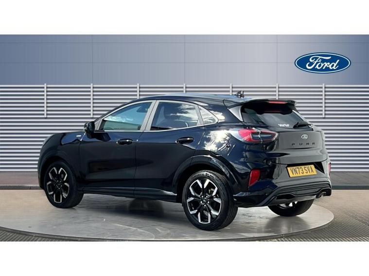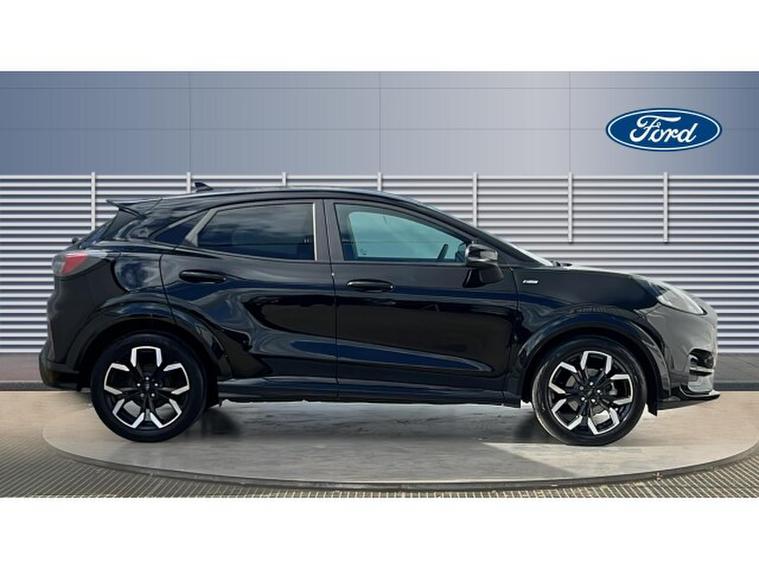 Ford Puma 1.0 EcoBoost Hybrid mHEV ST-Line X 5dr DCT Petrol Hatchback, , Gloucester Ford have this 1 owner from new Ford Puma 1.0 EcoBoost mHEV ST-Line X DCT finished in Agate Black. This Puma ST-Line X DCT in Agate Black is a stylish and well-rounded compact SUV that perfectly combines sporty design, modern hybrid efficiency, and everyday usability. Finished in sleek Agate Black, it has a strong and confident road presence, enhanced by the ST-Line Xs athletic styling, sculpted bodywork, and distinctive detailing. The 1.0-litre EcoBoost mild hybrid engine delivers an excellent balance of performance and efficiency. Inside, the Puma offers a refined and driver-focused cabin, with sporty touches that reflect the ST-Line X trim. High-quality materials, supportive seats, and a modern layout create a comfortable environment for both driver and passengers. The inclusion of the SYNC 3 infotainment system ensures intuitive control of navigation, media, and smartphone connectivity, helping keep you connected and in control on every journey. Practicality is another standout feature. The Puma is known for its clever use of space, including a versatile boot area with innovative storage solutions, making it highly adaptable for everyday needs such as shopping, travel, or leisure activities . Despite its compact size, it offers impressive usability and comfort. Convenience and ease of driving are further enhanced by rear parking sensors, which make manoeuvring in tight spaces simple and stress-free. The elevated driving position provides excellent visibility, adding confidence whether navigating busy city streets or open roads. Overall, the Ford Puma ST-Line X is a smart, efficient, and stylish SUV that delivers on all fronts. With its striking design, advanced technology, and practical features, it stands out as an excellent choice for drivers seeking a modern and versatile vehicle.