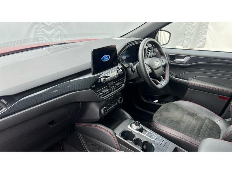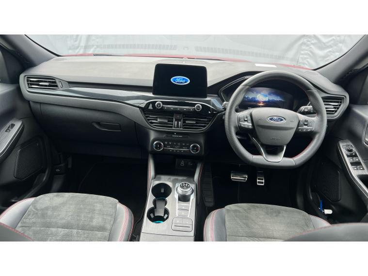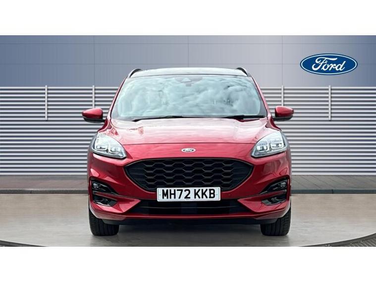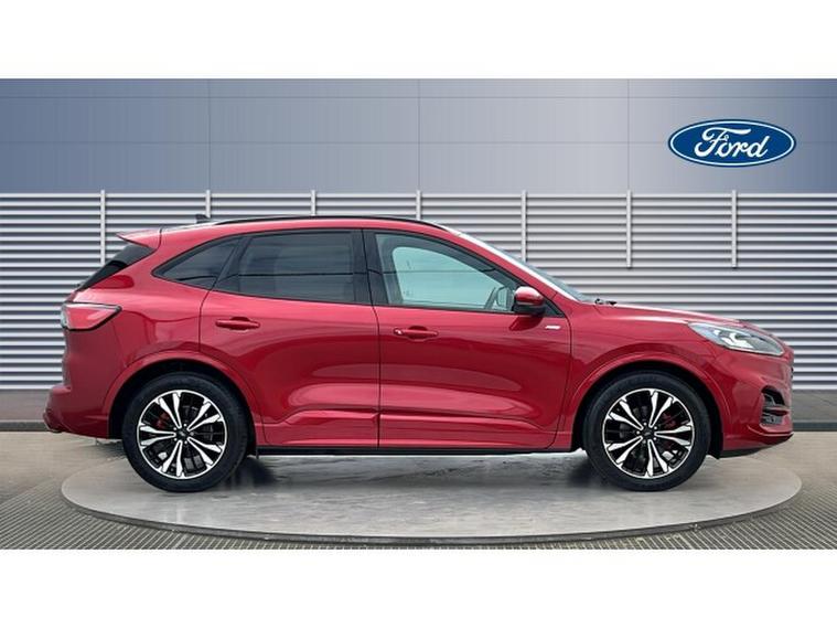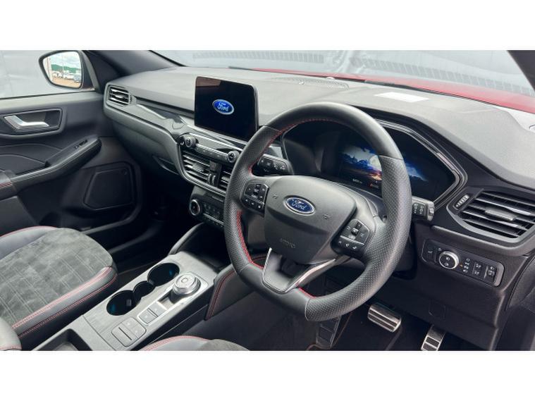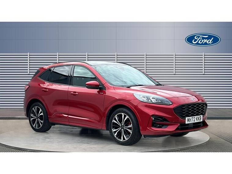 Ford Kuga 2.5 FHEV ST-Line X Edition 5dr CVT Hybrid Estate, , Gloucester Ford have this low mileage Ford Kuga 2.5 FHEV ST-Line X Edition finished in the metallic Lucid Red. This Kuga in Lucid Red is a striking and sophisticated SUV that effortlessly combines bold styling, hybrid efficiency, and advanced technology. Its vibrant Lucid Red finish gives the car a confident and sporty presence, perfectly complemented by the ST-Line X Editions athletic body styling, sleek lines, and refined detailing. The 2.5-litre FHEV hybrid system delivers smooth, responsive performance with impressive efficiency. Producing around 190PS, it offers a refined driving experience with seamless acceleration. Inside, the cabin reflects Fords commitment to quality and innovation. The inclusion of the SYNC 3 infotainment system with an intuitive 8-inch touchscreen provides seamless access to navigation, smartphone integration via Apple CarPlay and Android Auto, and voice controls . This creates a connected and user-friendly driving environment that keeps everything within easy reach. Comfort and practicality are further enhanced by the panoramic roof, which floods the interior with natural light and adds a sense of openness for both driver and passengers . Heated sports seats and premium materials contribute to a refined and comfortable atmosphere, ideal for daily commutes or long-distance travel. Convenience is a key strength, with front and rear parking sensors and a rear-view camera making manoeuvring simple and stress-free, particularly in tight urban spaces . The elevated driving position also provides excellent visibility and confidence on the road. Overall, the Ford Kuga ST-Line X Edition is a well-rounded and stylish hybrid SUV that delivers on performance, comfort, and technology. With its eye-catching design, advanced features, and everyday usability, it stands out as an excellent choice for drivers seeking a modern and versatile vehicle.