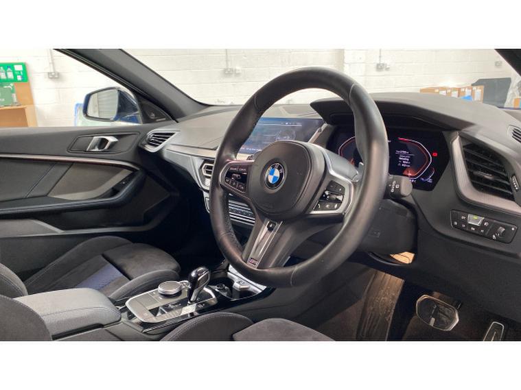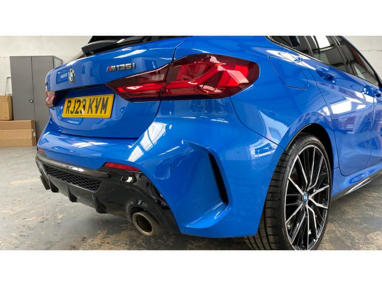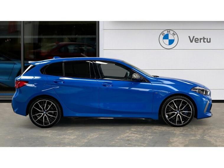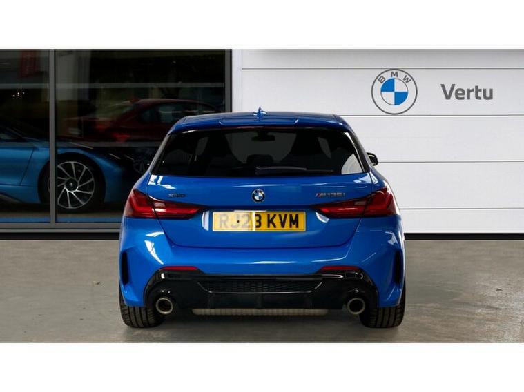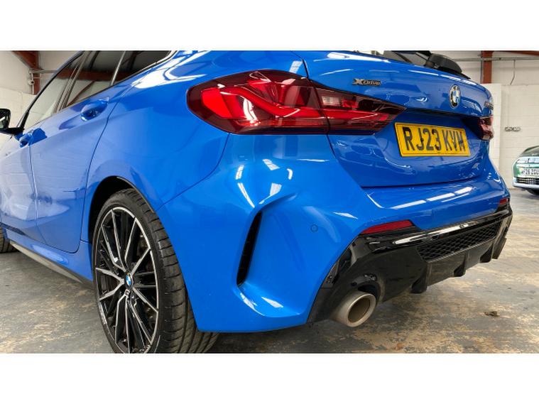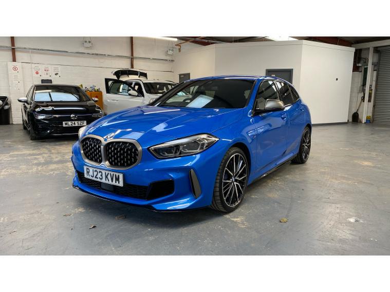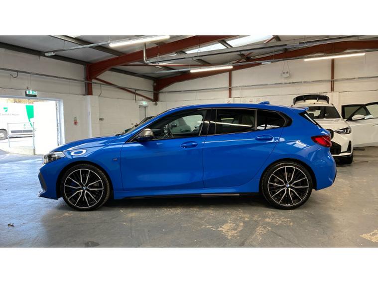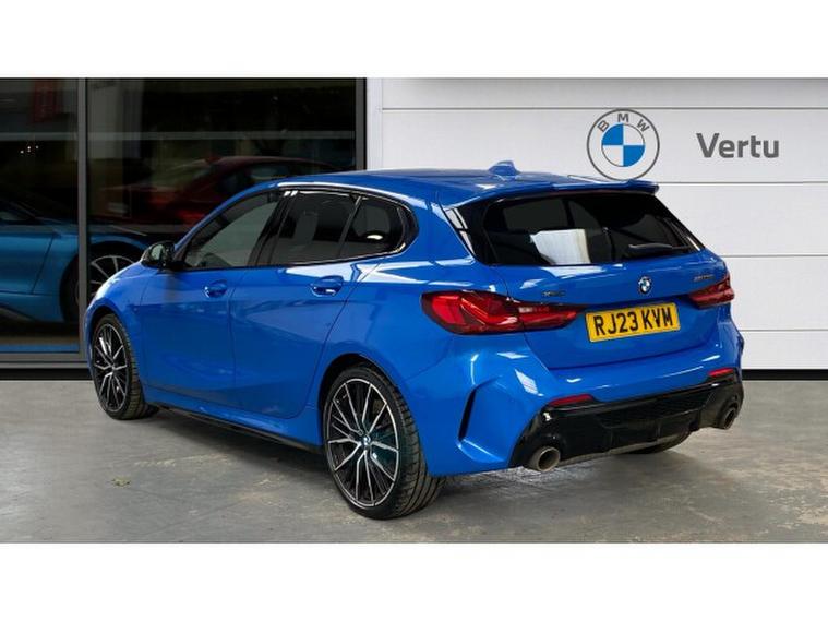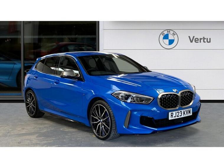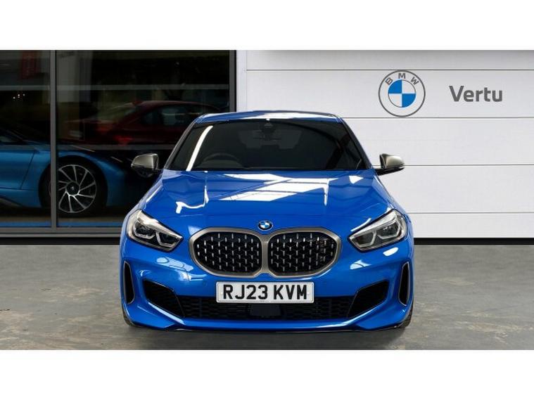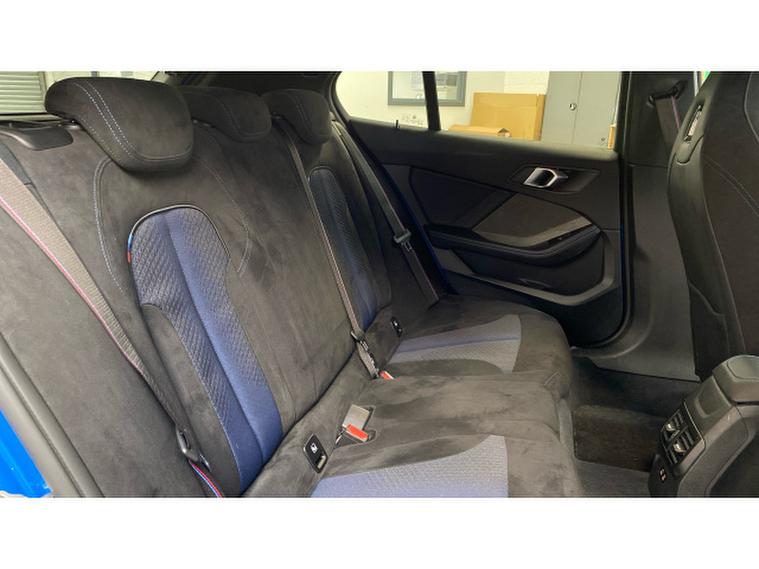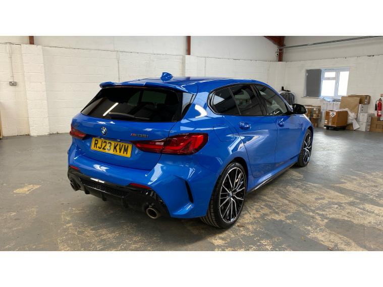 BMW 1 Series M135i xDrive 5dr Step Auto Petrol Hatchback, , Turn every journey into something special with this striking BMW M135i xDrive 5 Door. Finished in eye-catching Misano Blue Metallic, this performance hatchback perfectly balances sporty presence with everyday practicality, sitting confidently on 19 Double Spoke Alloy wheels. Inside, the Cloth/Alcantara Black Upholstery creates a driver-focused cabin that feels both premium and purpose-built.