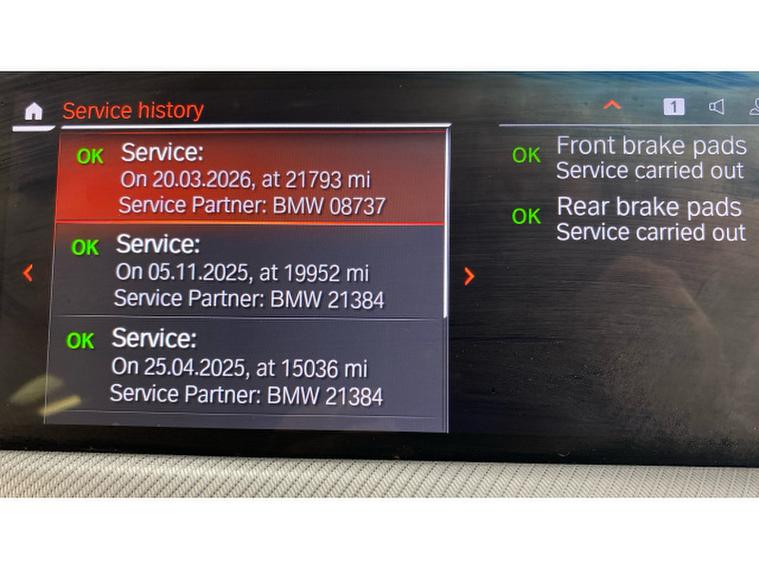This example benefits from a Full BMW Service History, with its most recent service completed on 20/03/2026 at 21, 793 miles, reflecting careful ownership and excellent maintenance.