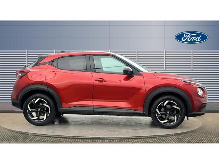 Nissan Juke 1.0 DiG-T 114 N-Connecta 5dr Petrol Hatchback, , Gloucester Ford have this Nissan Juke 1.0 DiG-T N-Connecta finished in the metallic Fuji Sunset. This Juke N-Connecta is a striking and modern crossover that perfectly blends bold design with everyday practicality. Its distinctive styling, enhanced by the vibrant Fuji Sunset finish, gives it a unique presence on the road, standing out confidently in a crowded SUV market. The sharp lines, signature front grille, and sporty proportions create a dynamic look that appeals to drivers seeking something both stylish and functional. Powered by an efficient 1.0-litre DiG-T petrol engine, the Juke delivers a smooth and responsive driving experience. The compact dimensions and elevated driving position further enhance manoeuvrability, giving drivers confidence in a variety of driving conditions. Inside, the Juke N-Connecta offers a well-designed and comfortable cabin packed with modern technology. The integrated satellite navigation system with TomTom traffic ensures accurate and reliable route guidance, while the intuitive touchscreen infotainment system keeps everything easily accessible. Smartphone connectivity, voice control, and wireless features add to the convenience, creating a connected and enjoyable driving environment. Practicality is another strong point, with ample interior space, supportive seats, and a generous boot capacity of over 400 litres, making it suitable for everyday use and weekend trips alike . The addition of a rear-view camera, along with front and rear parking sensors, makes parking and tight manoeuvres simple and stress-free, providing extra reassurance in busy areas. Comfort and safety are also key highlights. Features such as automatic climate control, advanced driver assistance systems, and intelligent emergency braking contribute to a refined and secure driving experience.
