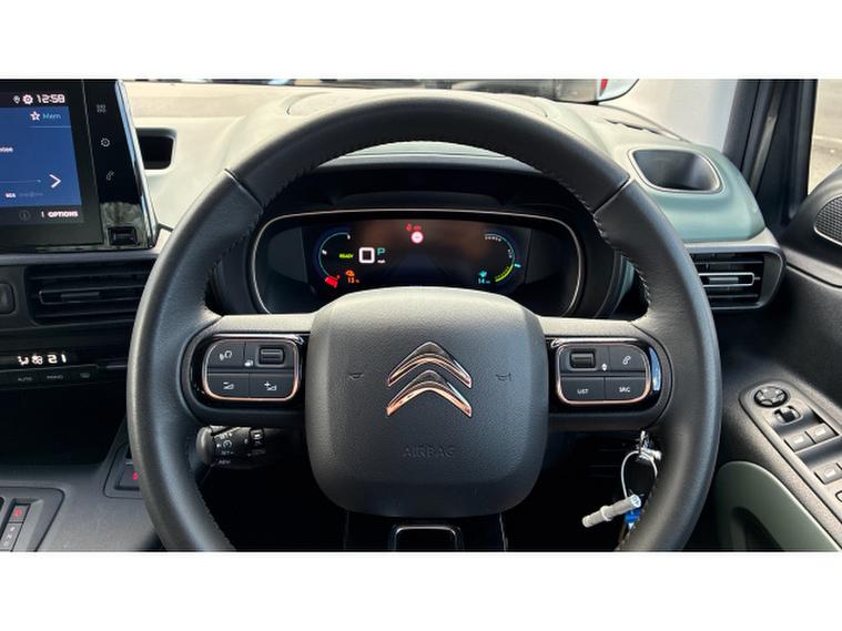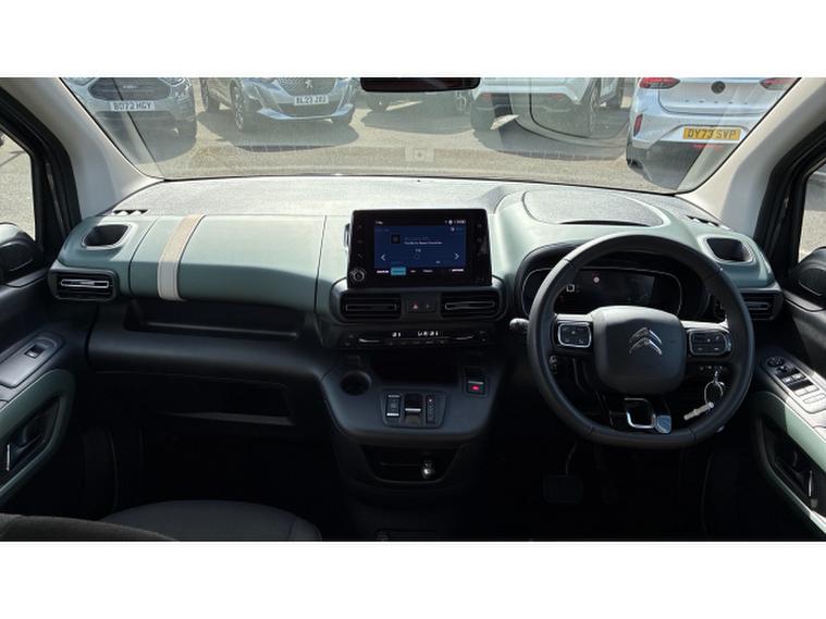 Citroen Berlingo 100kW Flair XTR M 50kWh 5dr Auto Electric Estate, , This 2024 Citroen e Berlingo Flair XTR M presents an exceptional ownership proposition with its remarkably low mileage of just 7092 miles, having had only one owner since new. As a fully electric vehicle, it boasts a 50 kWh battery offering a maximum range of 174 miles when new. Recharging is convenient, with a full charge at home on a 7kW charger taking approximately 7 hours and 30 minutes, while rapid public charging can take the battery from empty to 80% in as little as 30 minutes. This Flair XTR M trim level comes equipped with a suite of useful features, including a Bluetooth telephone facility, rear parking sensors, and a 180 degree colour reversing camera to aid manoeuvring. The Mirror Screen functionality seamlessly integrates your smartphone with Apple CarPlay and Android Auto, and the Visibility Pack ensures automatic headlights for enhanced driving convenience.