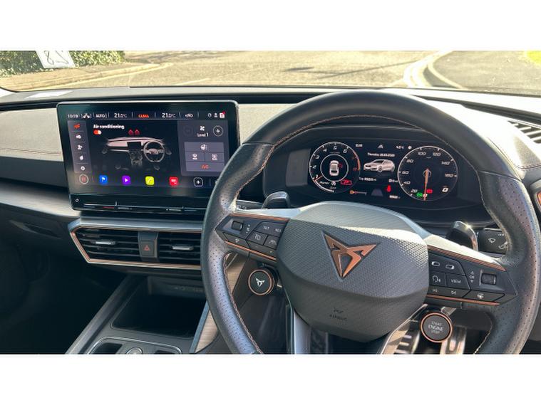 Inside, the VZ3 trim elevates the experience to another level. The cabin is a perfect blend of sport and luxury, featuring a fully digital cockpit display and a large central touchscreen infotainment system with navigation and wireless Apple CarPlay and Android Auto connectivity. Heated sports seats, a heated steering wheel and dual-zone climate control ensure comfort in all conditions, while ambient lighting and CUPRAs signature copper accents create a premium, driver-focused environment. A panoramic sunroof enhances the sense of space, and advanced driver assistance systemsincluding adaptive cruise control, lane assist, parking sensors and a rear-view cameraadd confidence and convenience.