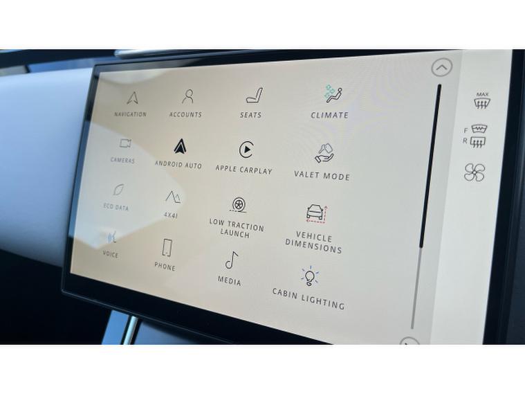 Inside, the interior is beautifully trimmed in Ebony, delivering the premium craftsmanship and comfort expected from a Range Rover. The cabin combines luxury materials with advanced technology to ensure every journey is both relaxing and connected.