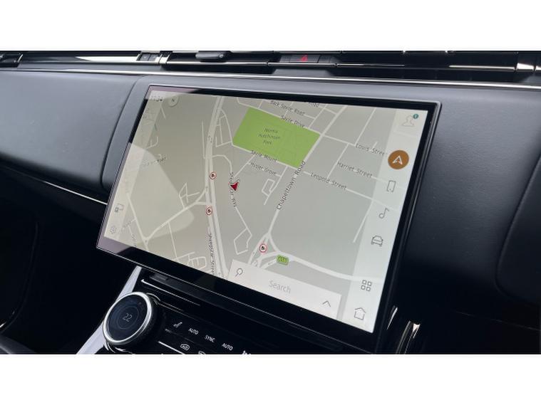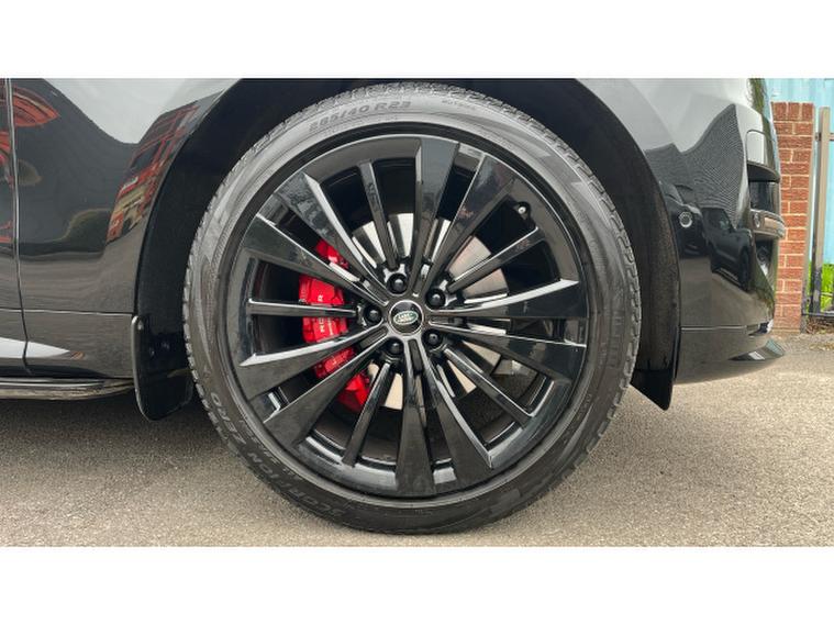 Finished in timeless Santorini Black, this Range Rover Sport delivers a powerful road presence. The exterior is perfectly complemented by striking 22" Style 5127 Satin Dark Grey alloy wheels, eye-catching red brake calipers, and privacy glass, creating a purposeful and athletic appearance. Pixel LED headlights provide outstanding visibility while enhancing the vehicle's sophisticated design.