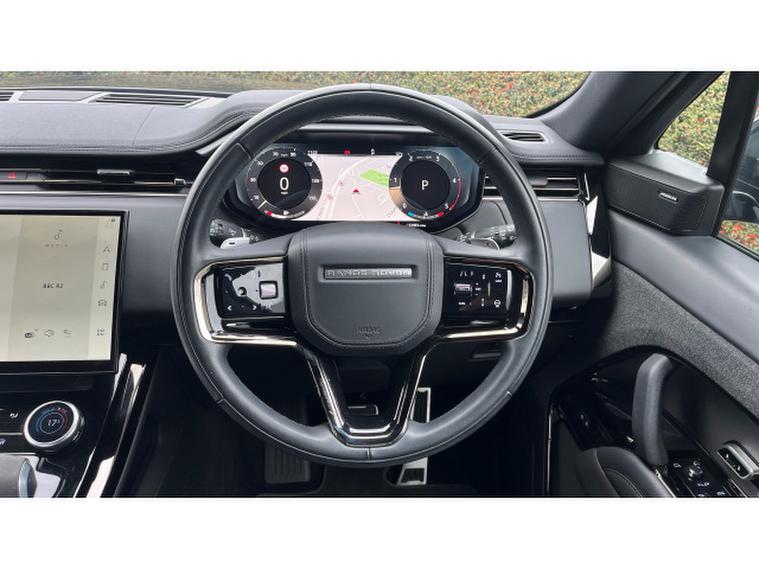Step inside and you are welcomed by a beautifully crafted interior trimmed in Ebony Windsor leather, delivering the premium comfort expected from Range Rover. The cabin is further enhanced by a fixed panoramic sunroof, filling the interior with natural light and adding to the sense of space and refinement.