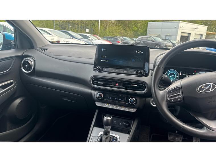 Hyundai KONA 1.6 GDi Hybrid Premium 5dr DCT Hybrid Hatchback, , APPLE CARPLAY! ANDROID AUTO! NAVIGATION! BLUETOOTH! Step inside this Hyundai Kona Hybrid Premium and you're immediately greeted by a cabin that feels like it's been designed for the modern driver - intuitive, connected, and genuinely enjoyable to use. Front and centre is the slick touchscreen system, complete with integrated satellite navigation that makes getting from A to B effortless, whether you're navigating busy city streets or heading off on a weekend escape. Then there's the seamless smartphone integration. With Apple CarPlay and Android Auto, your favourite apps, music, messages and maps are mirrored beautifully onto the display - it's quick, responsive, and exactly how in-car tech should be. Once you've experienced it, there's no going back. Out on the road, cruise control takes the strain out of longer journeys, allowing you to relax into the drive while maintaining steady, efficient progress. It's perfect for motorway cruising and makes this Kona an ideal companion for both daily commutes and road trips alike. Parking? No stress here. The rear-view camera provides a crystal-clear view of what's behind you, making tight spaces and tricky manoeuvres feel effortless. It's one of those features you'll quickly wonder how you ever lived without