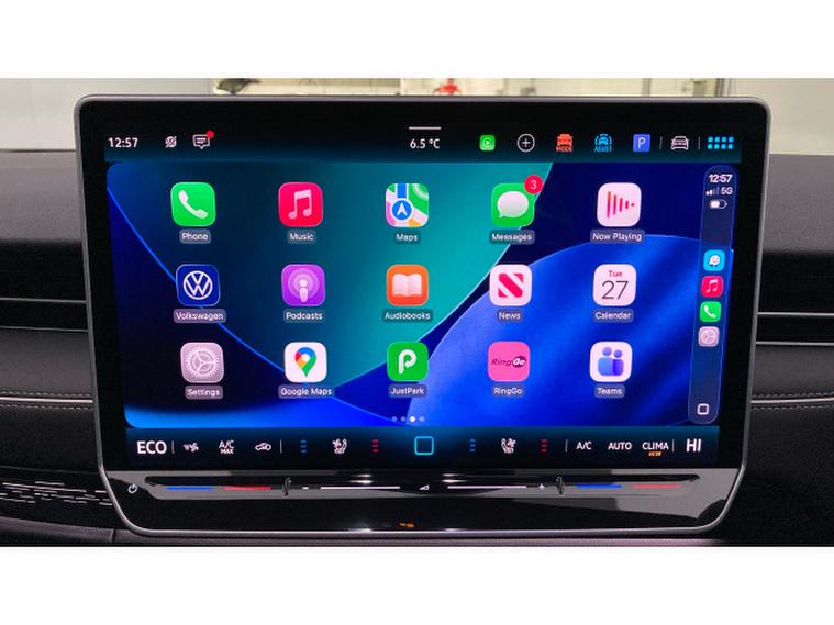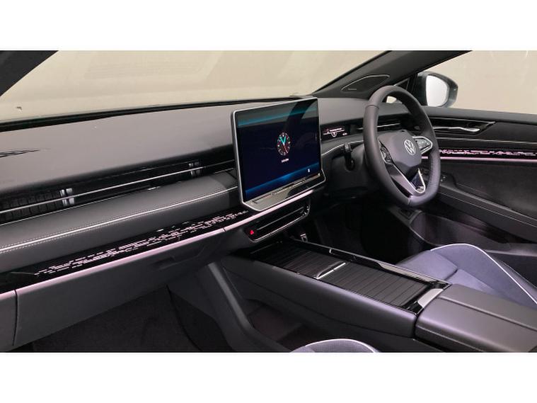 Designed for comfort on long journeys, the cabin features the optional Interior Pack Plus, including ventilated massage front seats, heated front and rear seats, power-adjustable lumbar support, and memory settings for both front seats. The Harman Kardon 12-speaker sound system ensures every drive is a concert-like experience, while ID.Light ambient lighting with 30 colour options creates a refined, contemporary atmosphere.