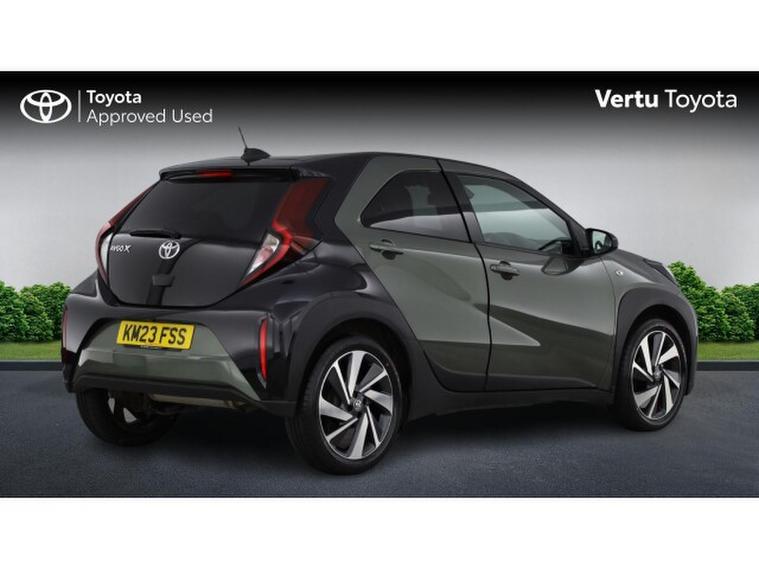 Toyota Aygo X 1.0 VVT-i Edge 5dr Petrol Hatchback, , Turn heads and elevate your city driving experience with this stylish Toyota Aygo X 1.0 VVT-i Edge, finished in eye-catching Cardamom Green Bi-tone metallic paint. With just 27, 994 miles on the clock, this compact crossover blends bold design with exceptional efficiency, making it the perfect choice for urban adventures and beyond. Packed with modern features, the Aygo X Edge boasts a high driving position, advanced touchscreen infotainment system with smartphone connectivity, reversing camera for effortless parking, and Toyota Safety Sense technology for added peace of mind. Its responsive 1.0 VVT-i engine delivers impressive fuel economy without compromising on fun. Plus, benefit from Toyotas incredible 10-year service-activated warranty, offering long-term reassurance and outstanding value. This is a car designed to stand out, equipped to impress, and built to lastdont miss it!