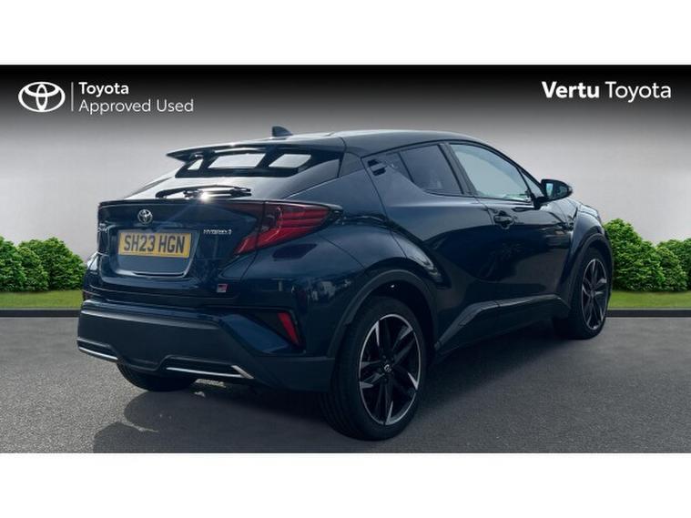 Toyota C-HR 1.8 Hybrid GR Sport 5dr CVT Hybrid Hatchback, , Turn heads and elevate every journey with this stunning Toyota C-HR GR SPORT 1.8 Hybrid, finished in eye-catching Midnight Teal Bi-Tone paintwork. First registered on 15/05/2023 and with just 25, 751 miles, this dynamic crossover perfectly blends sporty styling with exceptional efficiency. The GR SPORT trim delivers a more engaging drive, enhanced suspension tuning, and bold design details throughout, while the self-charging 1.8 Hybrid engine ensures smooth, economical performance without compromising on power. Inside, youll find a premium, driver-focused cabin packed with advanced technology, including a high-definition touchscreen infotainment system, smartphone integration, adaptive cruise control, and a full suite of intelligent safety features. Plus, enjoy complete peace of mind with Toyotas incredible 10-year service-activated warranty, offering long-term reassurance and outstanding value. This is a car designed to excite, impress, and deliver reliability in equal measuredont miss out.