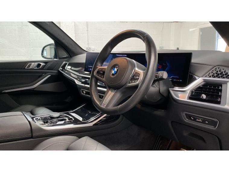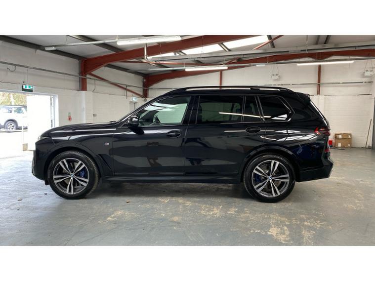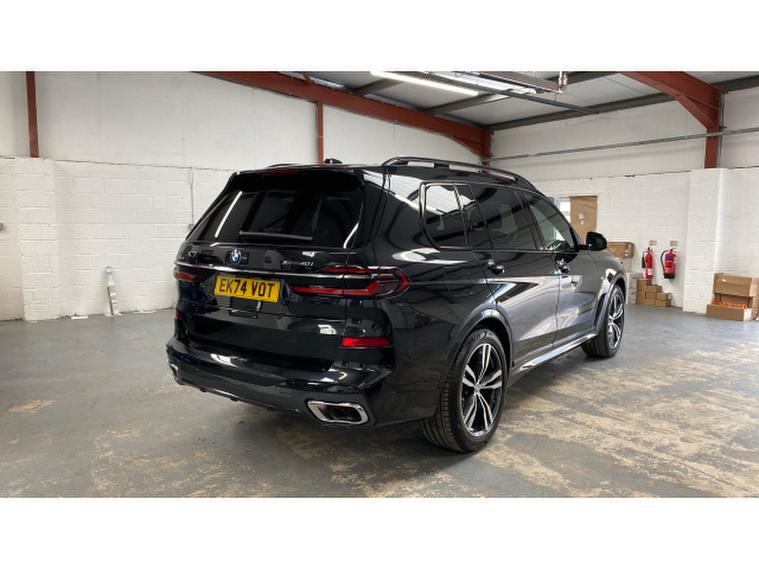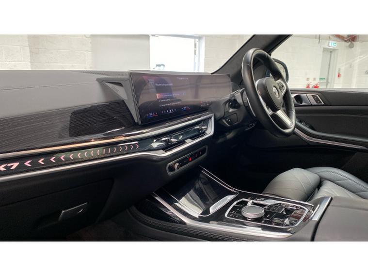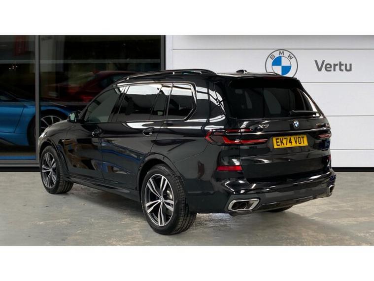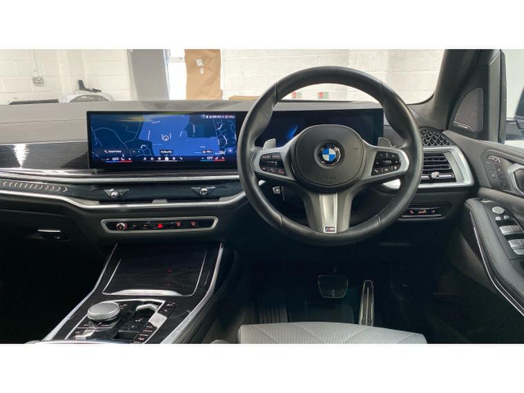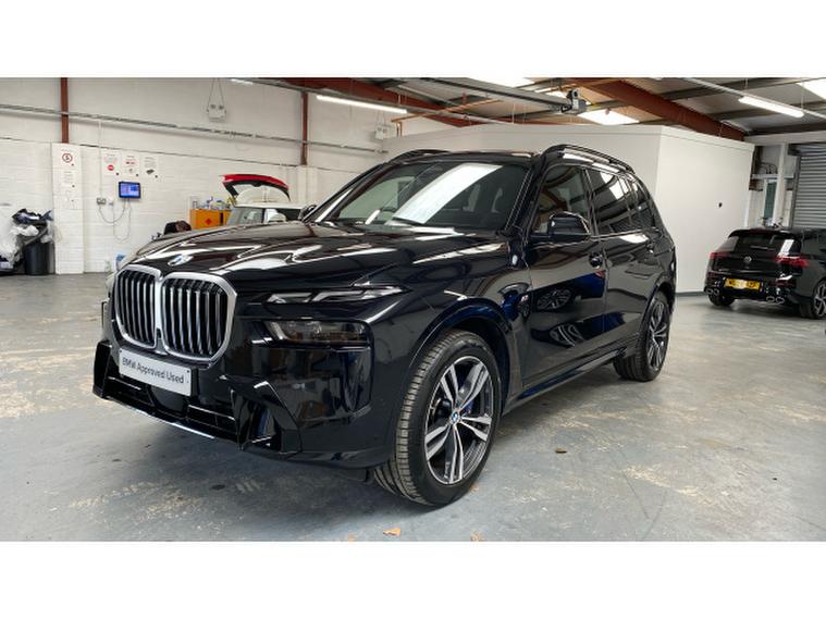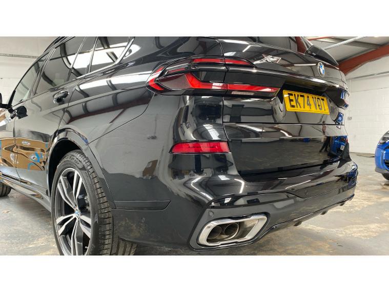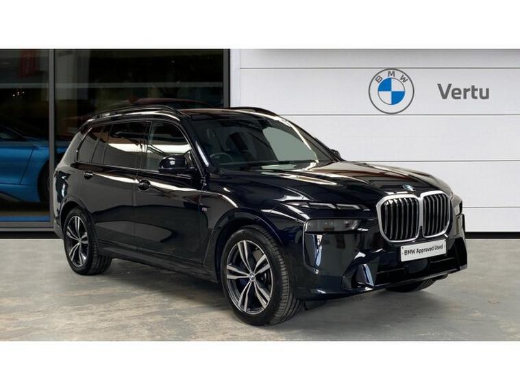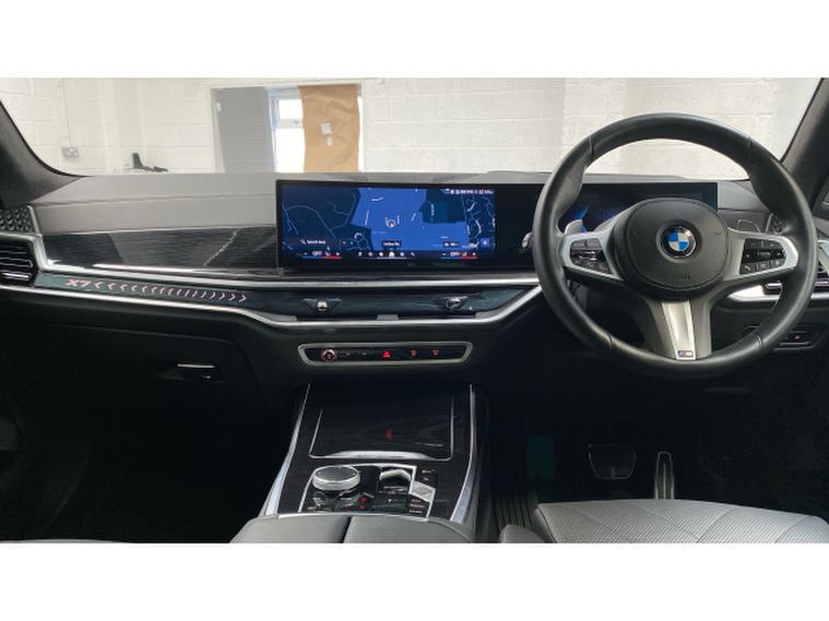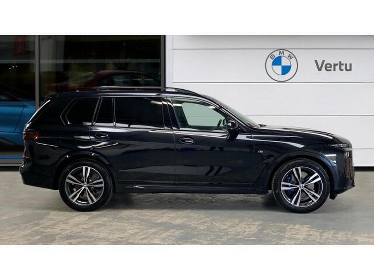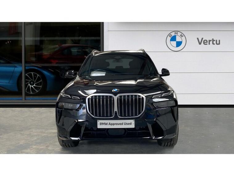BMW X7 xDrive40i MHT M Sport 5dr Step Auto Petrol Estate, , Experience refined luxury and commanding presence with this exceptional BMW X7 xDrive40i M Sport. Finished in stunning Black Sapphire Metallic, this premium SUV exudes sophistication from every angle, perfectly complemented by sleek 21 M Double Spoke Alloy wheels. Step inside to discover a beautifully crafted cabin featuring Black Sensafin Upholstery, offering both comfort and durability for everyday driving and long-distance journeys alike.