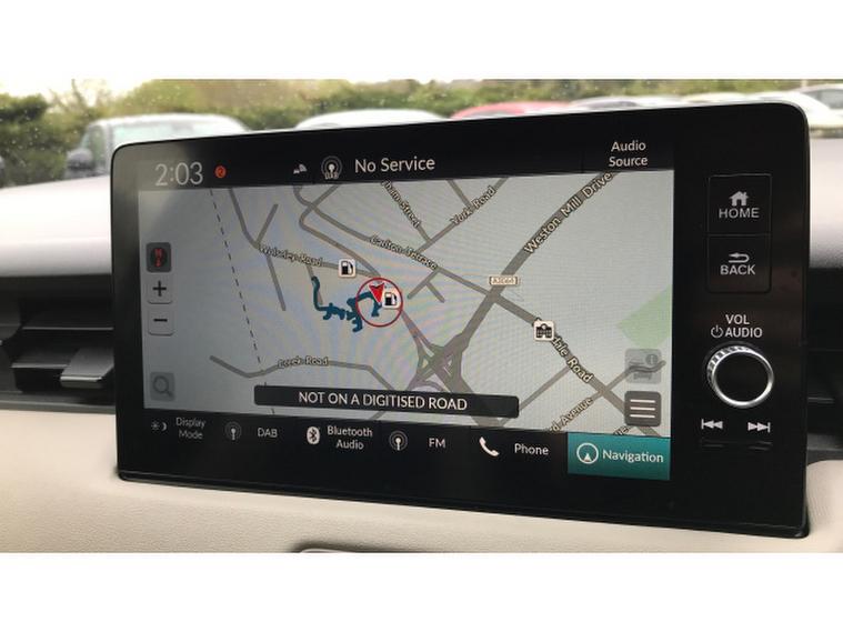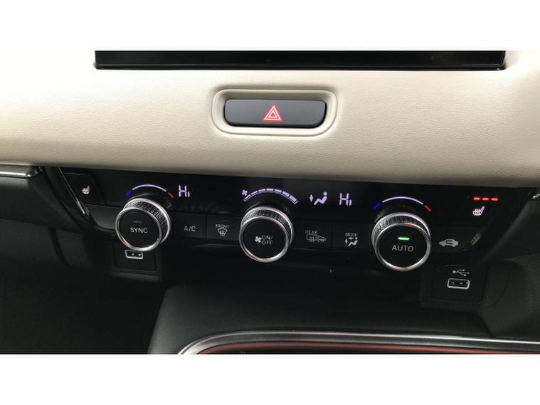 Inside, the cabin is both stylish and practical, offering part-leather upholstery, heated front seats, dual-zone climate control, and Hondas versatile Magic Seat system, providing excellent flexibility for passengers and luggage.