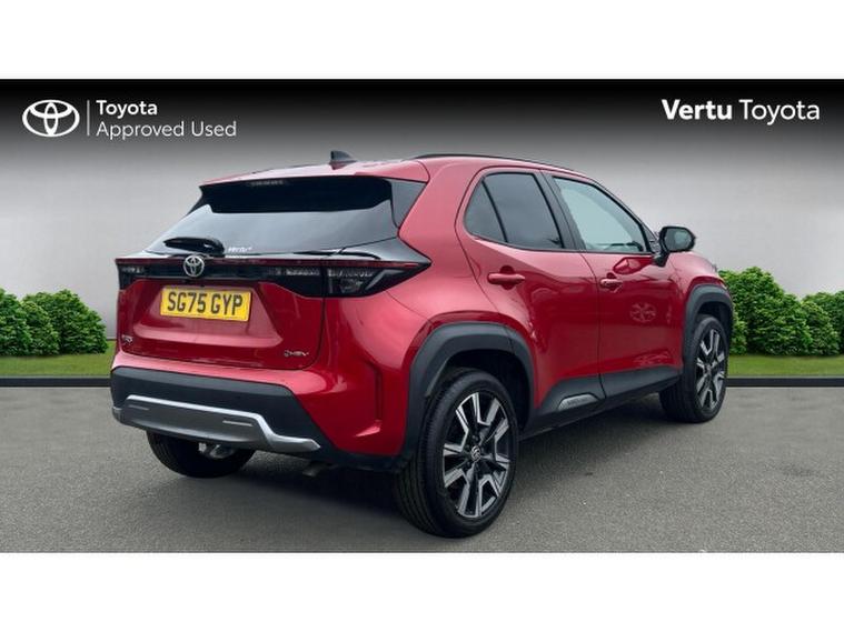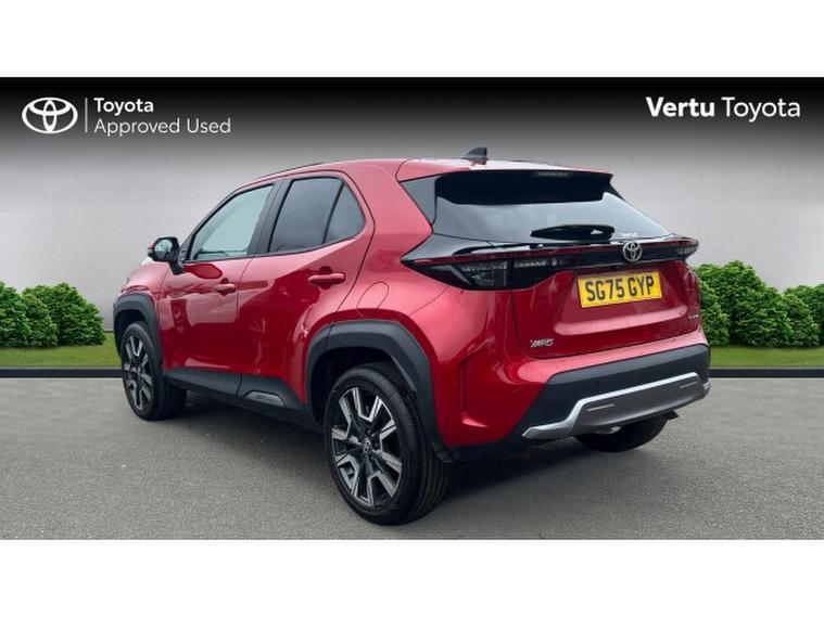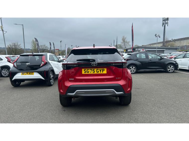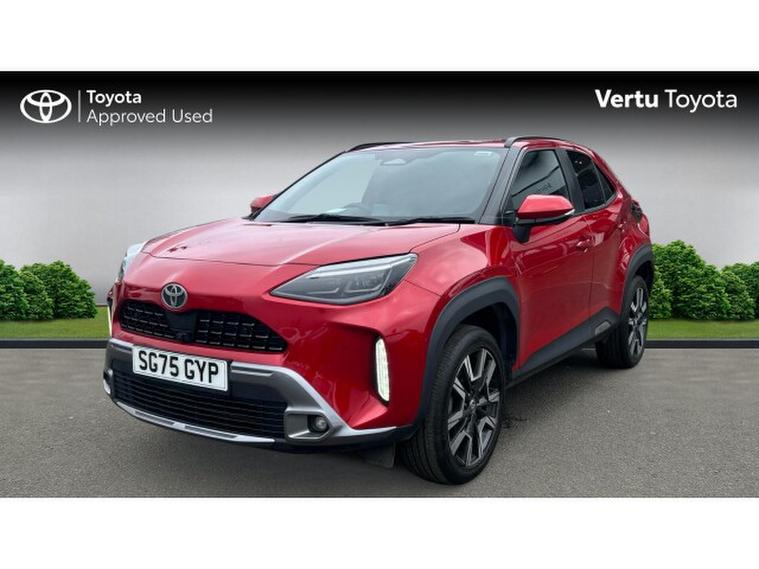 Toyota Yaris Cross 1.5 Hybrid 130 Excel 5dr CVT Hybrid Estate, , The Toyota Yaris Cross 1.5 Hybrid 130 Excel 5dr CVT is the perfect blend of style, efficiency, and cutting-edge technology, and this stunning example in eye-catching Scarlet Flare paintwork is sure to turn heads wherever it goes. With just 8, 423 miles on the clock, it offers an almost-new driving experience, powered by Toyotas advanced self-charging hybrid system that delivers exceptional fuel economy and smooth, responsive performance. The top-spec Excel trim means youll enjoy premium features throughout, including a sophisticated infotainment system with a crisp touchscreen display, satellite navigation, smartphone integration, a high-quality JBL sound system, heated seats, a reversing camera, and intelligent adaptive cruise control for effortless long-distance driving. Safety is equally impressive with Toyota Safety Sense, offering lane departure alert, pre-collision system, and road sign assist for total peace of mind. Compact yet practical, with a raised driving position and flexible interior space, its ideal for both city driving and weekend adventures. Plus, it comes with Toyotas incredible 10-year service-activated warranty, giving you long-term confidence and outstanding value. This is a dynamic, high-spec hybrid SUV that truly stands out from the crowd.