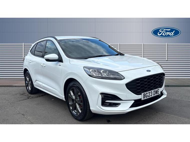 Turn every journey into something special with this dynamic 2023 Ford Kuga 1.5 EcoBoost ST‑, Line Edition, a stylish and sporty estate that perfectly balances performance, comfort and practicality. Powered by a punchy 150‑, bhp petrol engine, the Kuga delivers smooth, confident acceleration and an engaging drive, while the ST‑, Line Edition adds a sharper edge with athletic styling, distinctive design details and a more dynamic on‑, road feel. Inside, the cabin feels modern, spacious and premium, offering excellent comfort, smart technology and plenty of room for passengers and luggage alike. With its commanding road presence, impressive versatility and unmistakable sporty character, this Kuga is ideal for drivers who want the practicality of an SUV without sacrificing style or driving enjoyment. A fantastic opportunity to own a modern, eye‑, catching family car thats ready for whatever life throws at it.