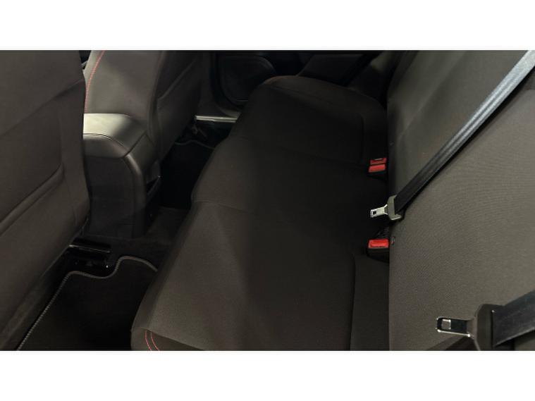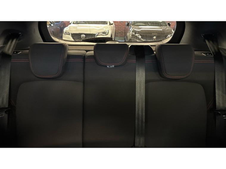 - Cloth upholstery with red stitching
