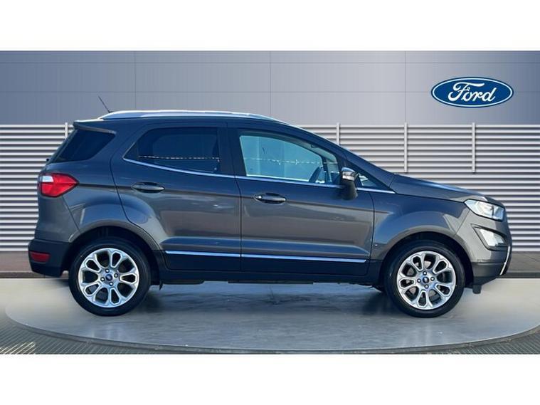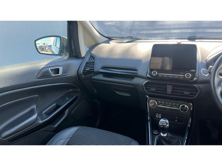 Ford EcoSport 1.0 EcoBoost 125 Titanium 5dr Petrol Hatchback, , Gloucester Ford have this 2 owner from new Ford Ecosport 1.0 EcoBoost 125 Titanium finished in Magnetic Grey. This EcoSport Titanium in Magnetic Grey is a stylish and versatile compact SUV that perfectly blends practicality, efficiency, and modern technology. Its sleek Magnetic Grey finish gives the vehicle a refined and contemporary appearance, complemented by eye-catching alloy wheels and chrome detailing that enhance its road presence. Powered by Fords award-winning 1.0 EcoBoost engine, this model delivers an impressive balance of performance and fuel efficiency. Producing 125 PS, it offers smooth acceleration and responsive handling, making it ideal for both urban driving and longer journeys. Inside, the Titanium trim provides a premium and comfortable cabin environment. Partial leather upholstery, ambient lighting, and a well-designed layout create a refined driving experience. The inclusion of the SYNC 3 infotainment system with an 8-inch touchscreen stands out as a key feature, offering seamless connectivity through Apple CarPlay and Android Auto, along with intuitive voice control and navigation. Practicality is another strong point of the EcoSport. With its elevated driving position, excellent visibility, and flexible interior space, it caters well to everyday needs. Features such as a rear-view camera, parking sensors, cruise control, and automatic climate control add convenience and ease to every journey. Overall, the Ford EcoSport 1.0 EcoBoost 125 Titanium is a well-rounded, dependable, and stylish vehicle that delivers comfort, efficiency, and smart technology in one appealing package.
