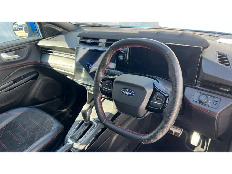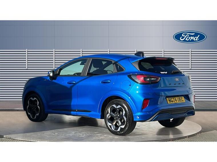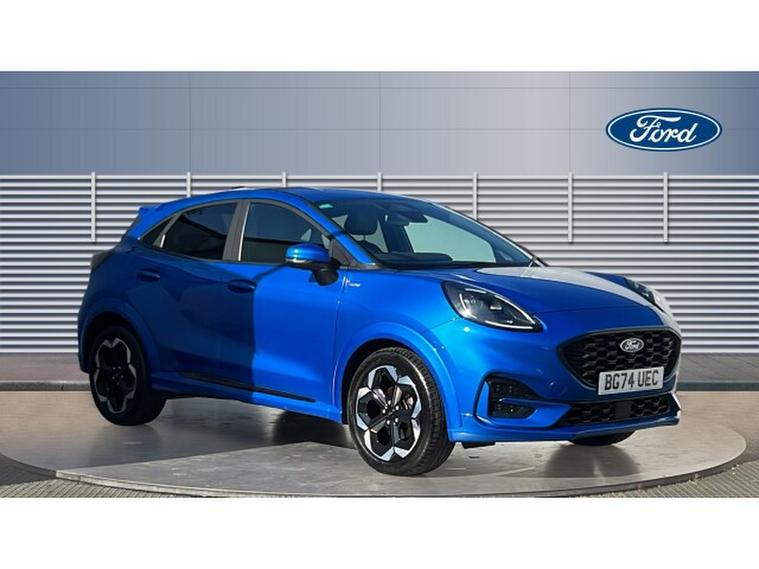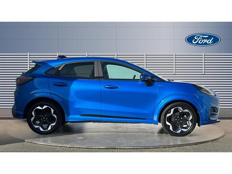 Ford Puma 1.0 EcoBoost Hybrid mHEV ST-Line X 5dr DCT Petrol Hatchback, , Gloucester Ford have this Ford Puma 1.0 EcoBoost mHEV ST-Line X DCT finished in the metallic Desert Island Blue. This Puma ST-Line X in Desert Island Blue is a standout example of modern automotive design meeting everyday practicality. From the moment you see it, the striking color paired with the sleek ST-Line X styling creates an immediate impression of sophistication and sporty intent. Its sculpted lines and confident stance give it a premium presence that feels well above its class. The 1.0 EcoBoost mild hybrid engine delivers an impressive balance of efficiency and performance. The mHEV system enhances fuel economy while providing smooth acceleration, making it ideal for both city driving and longer journeys. Paired with the DCT automatic transmission, gear changes are seamless, offering a refined and effortless driving experience. Inside, the Puma continues to impress with a thoughtfully designed cabin that prioritizes comfort, technology, and driver convenience. The SYNC 4 infotainment system is intuitive and responsive, providing easy access to navigation, media, and smartphone connectivity. It ensures that every journey is both connected and enjoyable. Practicality is equally strong, with features that make daily driving simpler and safer. Rear parking sensors and a rear-view camera provide excellent visibility and confidence when manoeuvring in tight spaces, reducing stress in busy environments. The elevated driving position also contributes to a clear view of the road ahead. Overall, this Puma model combines style, innovation, and practicality in a way that feels cohesive and well-executed. Its a car that doesnt just meet expectations but exceeds them, delivering a driving experience that is both enjoyable and dependable. Whether commuting, exploring, or simply enjoying the drive, it proves to be a smart and rewarding choice.