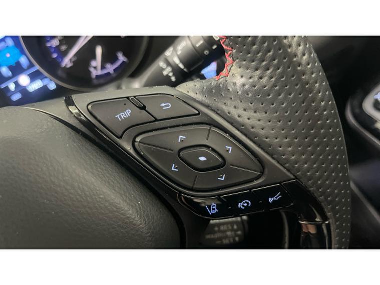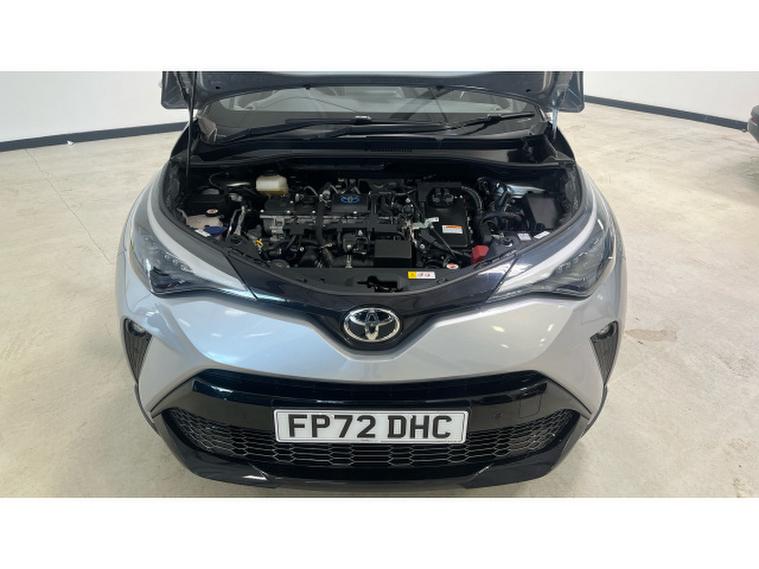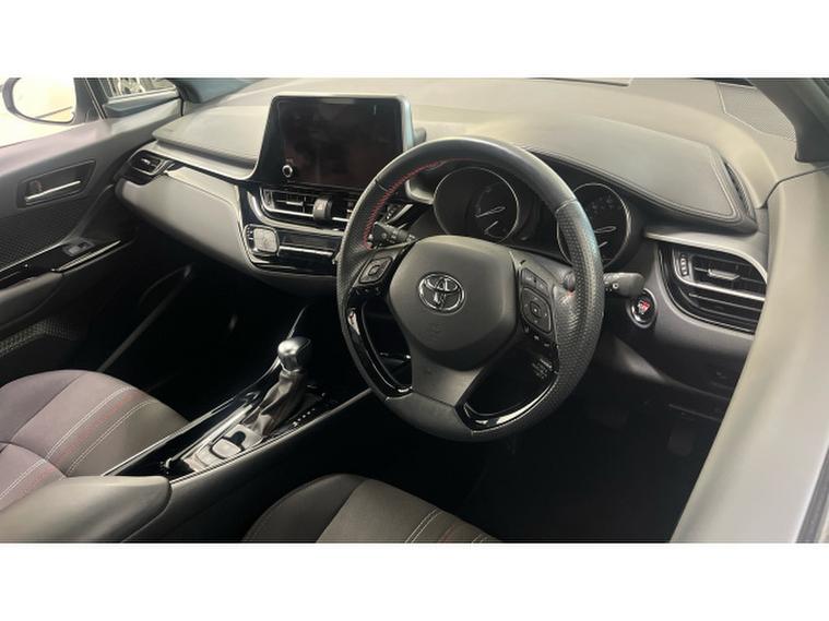 Toyota C-HR 1.8 Hybrid GR Sport 5dr CVT Hybrid Hatchback, , Presenting to you our 2022 Toyota C-HR VVT-h GR SPORT is a remarkable find with exceptionally low mileage for its age, having covered just 17, 601 miles. This Euro 6 compliant model boasts a 1.8L Petrol Hybrid engine, offering an impressive fuel economy of 58 mpg. The GR SPORT trim enhances its appeal with distinctive GR Sport Alcantara and Leather upholstery in black, complemented by automatic headlights and a reversing camera for effortless parking. The inclusion of a Parking Pack with front and rear sensors further aids manoeuvrability, while the heated driver and front passenger seats ensure comfort in all conditions.