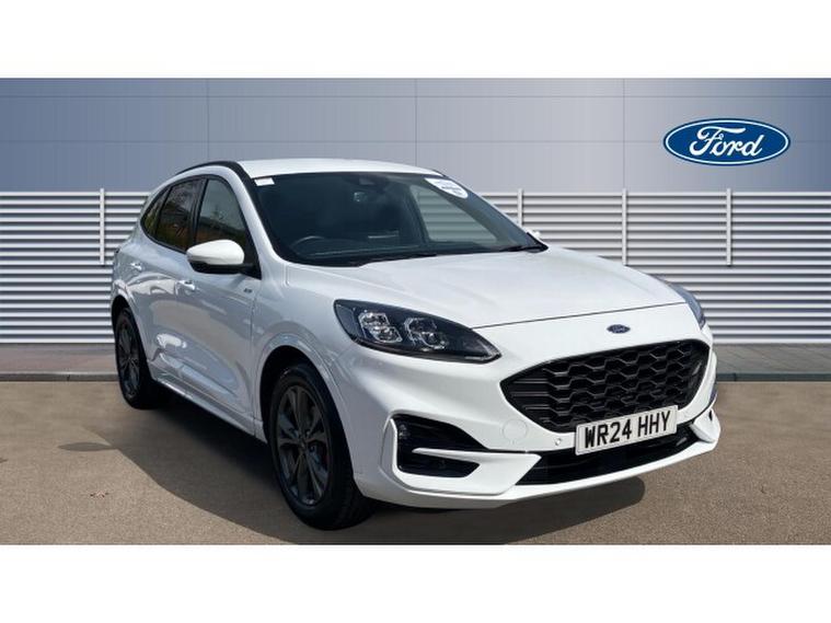Ford Kuga 2.5 FHEV ST-Line Edition 5dr CVT Hybrid Estate, , This 2024 Ford Kuga ST Line Edition is a superb example, having had only one owner from new. This striking ST Line Edition variant boasts a responsive 2.5 litre petrol hybrid engine, meeting Euro 6 emission standards. Inside, you'll find comfort and convenience with Electronic Automatic Temperature Control air conditioning and the Ford SYNC 3 DAB Navigation System, complete with Android Auto and Apple CarPlay integration, plus a premium branded sound system. The Ford Keyfree System allows for effortless keyless entry and starting with the Ford Power Starter Button, while front and rear parking sensors provide added confidence when manoeuvring. Automatic headlights with a Follow Me Home function ensure you always have visibility.