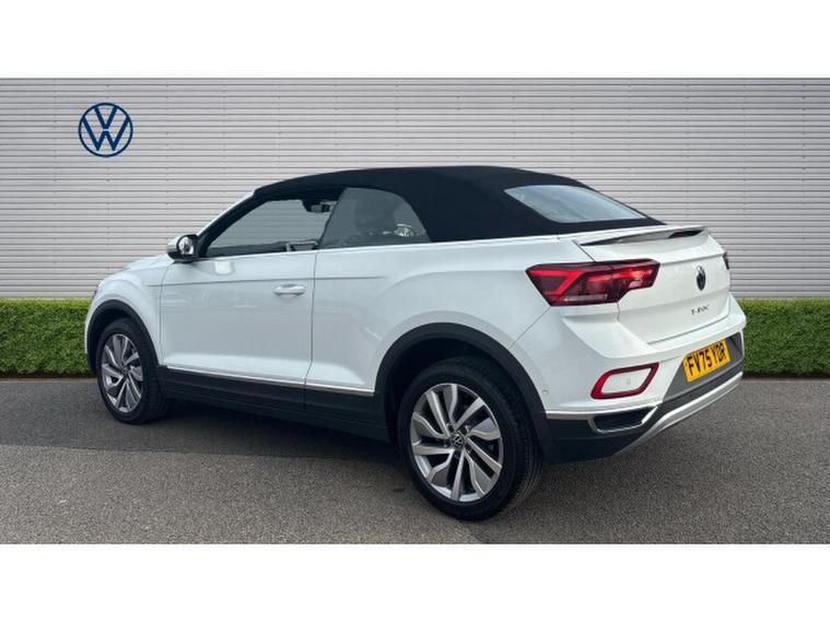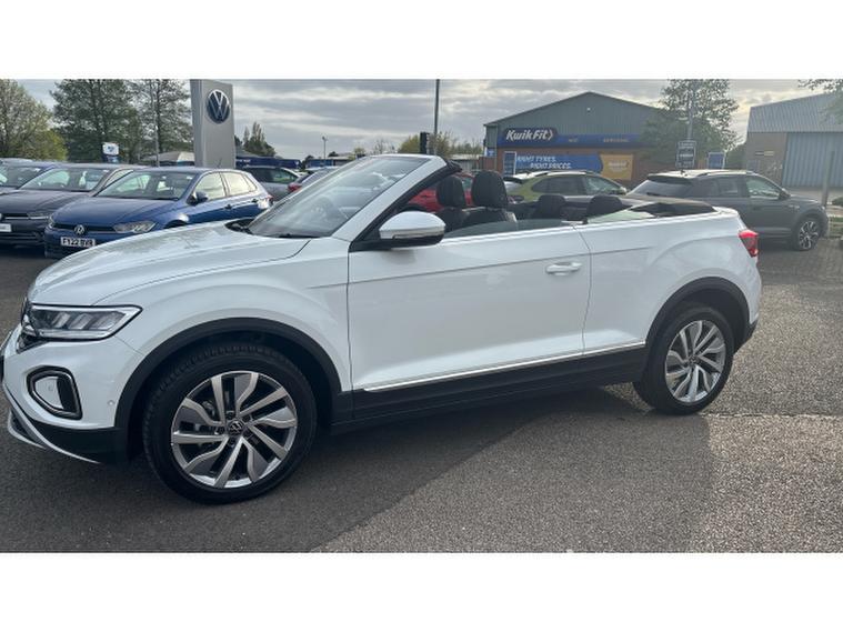 Volkswagen T-Roc 1.5 TSI Style 2dr DSG Petrol Cabriolet, , This 2025 Volkswagen T-Roc TSI Style presents an exceptional opportunity with an incredibly low mileage of just 1891 miles, making it practically new. This one owner vehicle boasts a 1.5 litre petrol engine, meeting Euro 6 emission standards. Inside, you'll find the advanced Air Care Climatronic air conditioning system with its active combination filter and 2 zone temperature control, ensuring a comfortable cabin environment. For effortless journeys, it features adaptive cruise control with a speed limiter, and a multifunction front facing camera aids with parking. The T-Roc is equipped with LED headlamps for superior visibility and the Discover Media Navigation System, which seamlessly integrates with Android Auto and Apple CarPlay for all your connectivity needs.