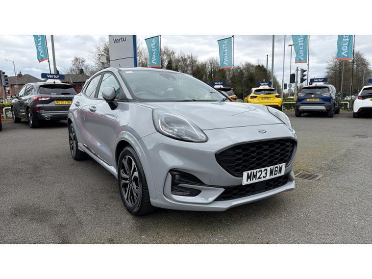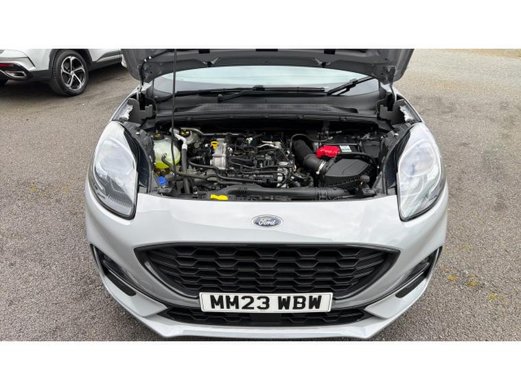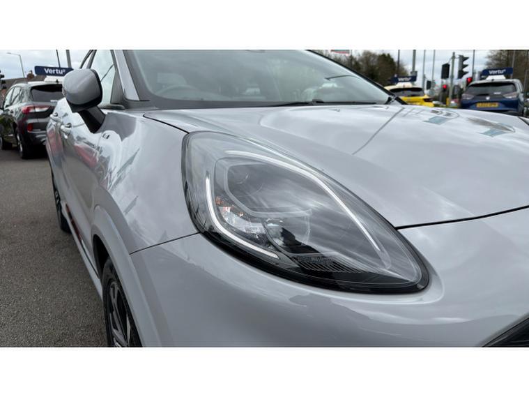 Ford Puma 1.0 EcoBoost Hybrid mHEV ST-Line 5dr Petrol Hatchback, , A stylish and efficient compact SUV that combines sporty design with advanced hybrid technology. Powered by the award-winning 1.0 EcoBoost mild hybrid engine, this Puma delivers responsive performance while improving fuel economy and reducing emissions, making it ideal for both urban driving and longer journeys. The ST-Line trim enhances its dynamic appeal with distinctive body styling, bold alloy wheels, and a sporty interior featuring red stitching and supportive sports seats. Inside, the cabin is modern and well-appointed, offering a large touchscreen infotainment system with satellite navigation, Apple CarPlay and Android Auto, along with a premium sound system for an enhanced in-car experience. Practicality is a key highlight, with the innovative MegaBox providing additional boot storage and versatility for everyday use. Comfort features include air conditioning, cruise control, and keyless start, while advanced safety systems such as lane-keeping assist, rear parking sensors, and driver alert technologies ensure peace of mind. This well-maintained vehicle offers efficiency, practicality, and standout style.