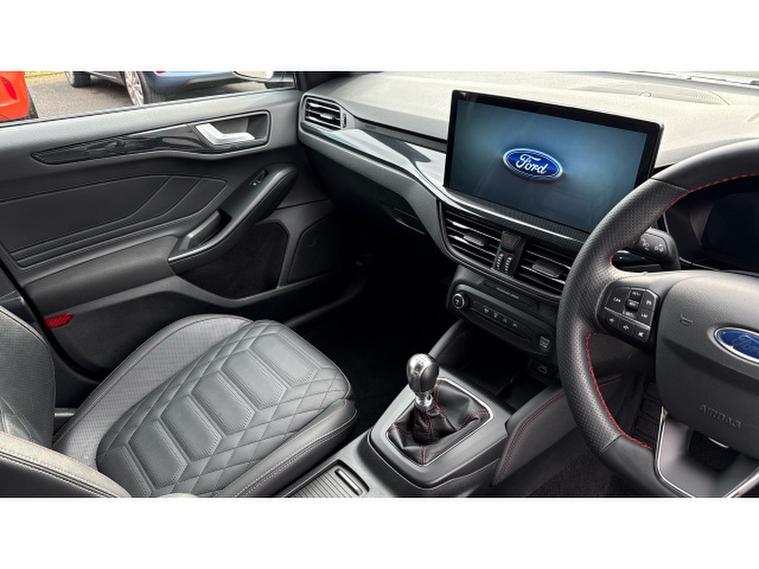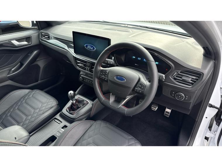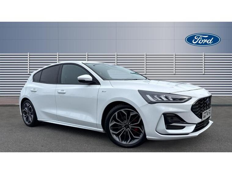 Ford Focus 1.0 EcoBoost Hybrid mHEV ST-Line X 5dr Petrol Hatchback, , Step into premium style and cutting-edge technology with this exceptional 2025 Ford Focus 1.0 EcoBoost ST-Line X, finished in stunning Frozen White and with just 18, 907 miles on the clock. This sporty and refined hatchback delivers the perfect blend of performance, comfort, and advanced features. Inside, youll find a high-quality cabin equipped with luxurious leather heated seats, ensuring maximum comfort in all seasons. The latest SYNC 4 infotainment system provides a seamless and intuitive user experience, complemented by wireless Apple CarPlay and Android Auto to keep you fully connected on the gowithout the need for cables. Designed to adapt to your driving style, this Focus features selectable driving modes to suit every journey, whether youre commuting in the city or enjoying a longer motorway drive. The premium B&O sound system delivers crystal-clear audio, enhancing every trip with immersive sound quality. Convenience is key with keyless entry, allowing quick and effortless access, while the ST-Line X styling ensures this vehicle stands out with its sporty and dynamic presence. This Ford Focus represents the very latest in designnd autonomous emergency braking for added reassurance. Well maintained and highly specified, this Ford Focus ST-Line Hybrid offers style, efficiency, technology, and exceptional value. At Vertu Motors Ford Bolton all our vehicles come fully prepared to the highest standard with our peace of mind Main Dealer Guarantee. This includes having any tyre replaced that has less than 3mm tread depth (legal limit is 1.6mm), minimum 6 months MOT and at least 6 months or 6, 000 miles till your next service. All the cars that we offer are HPI clear (to check there is no outstanding finance or prior accidents) and we do a full Government VOSA report check to verify the mileage. Nationwide delivery is available on all our vehicles, so call today to arrange a test drive and let one of our professional sales executives give you the Vertu Motors Ford Bolton Experience. Due to our high stock turnover, we recommend leaving a deposit on this car.