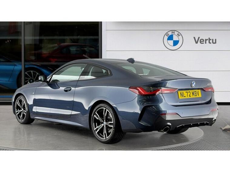 BMW 4 Series 420i xDrive M Sport 2dr Step Auto Petrol Coupe, , The 2022 BMW 4 Series 420i M Sport in Arctic Race Blue is now available and ready to test drive at Vertu BMW Sunderland. This 4 Series is a sleek and stylish coupe with brilliant performance and a range of helpful features that enhance comfort, safety and daily driving ease. Diving into the standout features The M Sport Package with 18 Inch Double-Spoke Alloy Wheels that perfectly contrast the Arctic Race Blue finish. The M Sport Suspension lets you enjoy a wonderfully smooth ride as you tackle city streets and motorways. The M Sport Leather Steering Wheel adds comfort and total control behind the wheel. The M Sport Exterior Styling provides a stylish exterior trim with the world-renowned M Sport Badges.