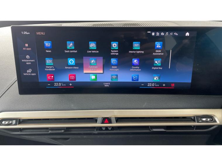 BMW iX 240kW xDrive40 M Sport 76.6kWh 5dr Auto Electric Estate, , This 2022 BMW iX 40 M Sport presents an exceptional opportunity with its remarkably low mileage of just 23, 968 miles for its age. As an all electric vehicle, it offers a sophisticated driving experience with its Four Wheel Drive drivetrain. This M Sport variant boasts a substantial 77 kWh battery, providing a maximum range of 257 miles when new. For convenience, it features a Wireless Charging Tray for your phone, and its impressive towing weight capability stands at 2500 kg.