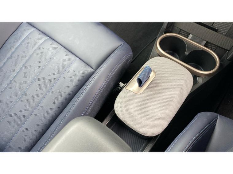 - Vescin/Cloth upholstery includes dash knit in black with blue accents
