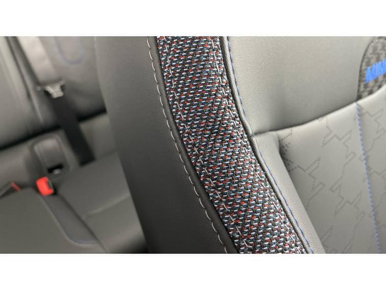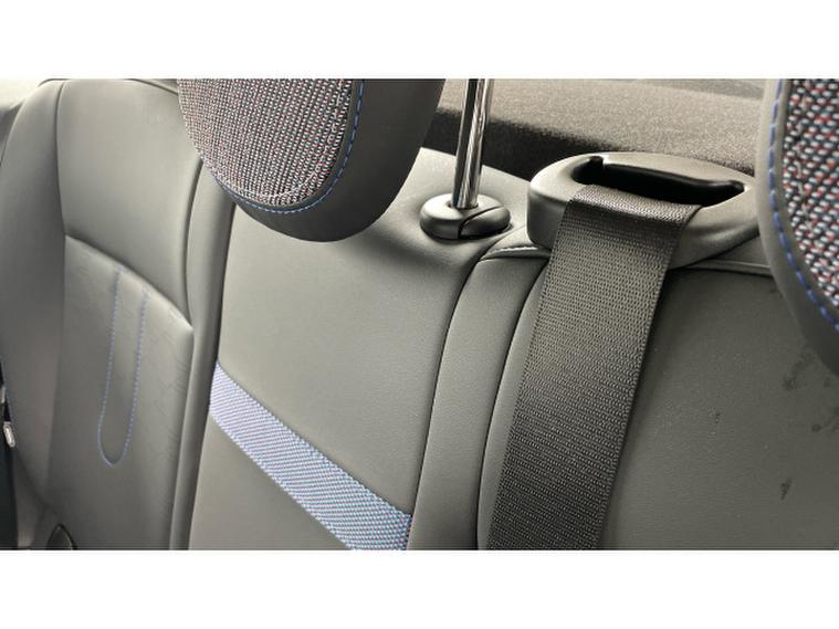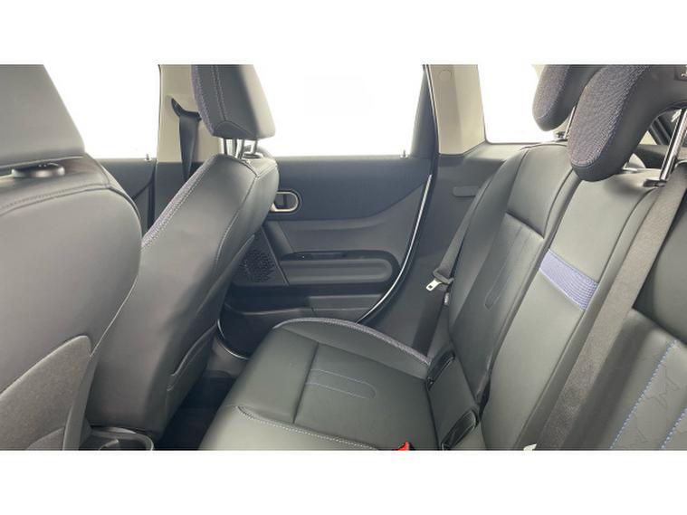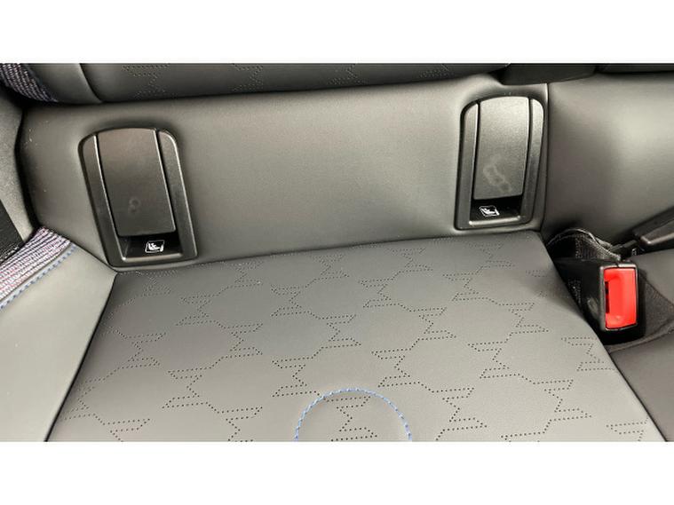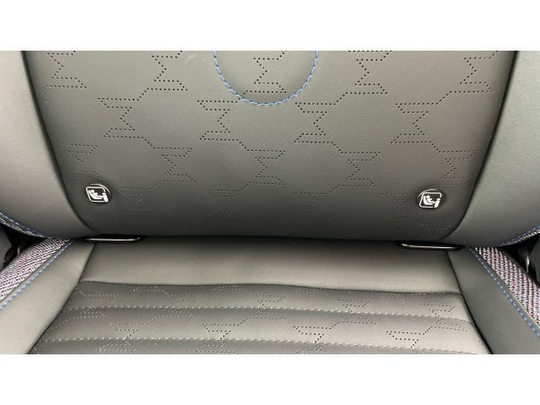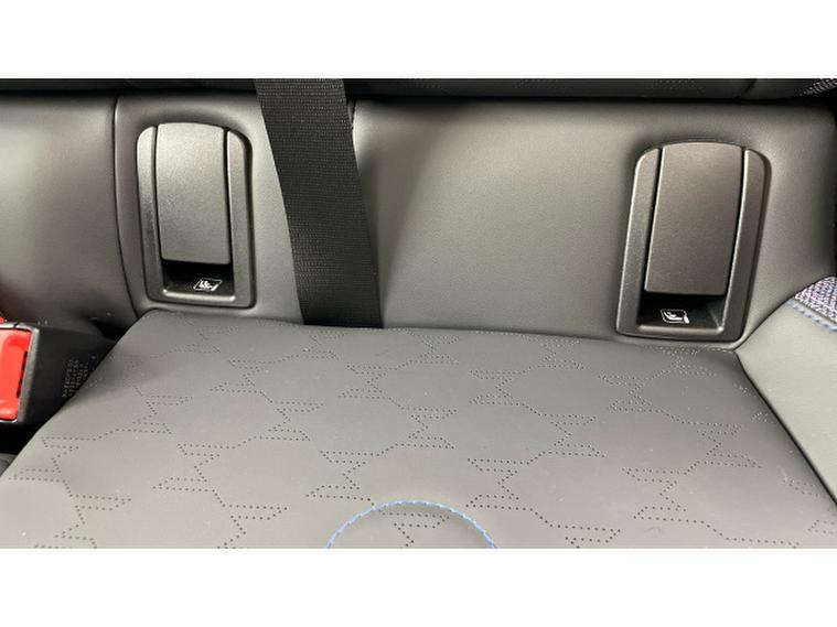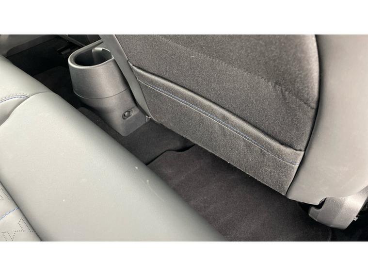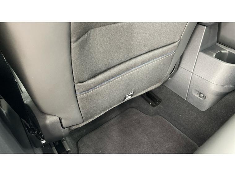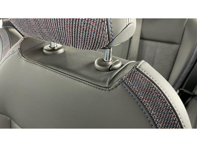 - Vescin/Cloth upholstery includes dash knit in black with blue accents