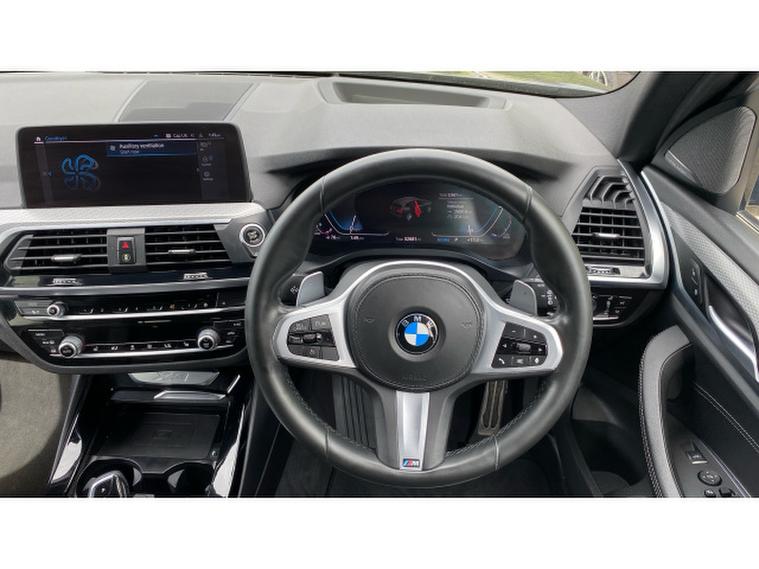 BMW X3 xDrive20d M Sport 5dr Step Auto Diesel Estate, , Presented in striking **Sophisto Grey Metallic**, this BMW X3 xDrive20d M Sport blends athletic presence with refined elegance. The exterior is complemented perfectly by **19-inch alloy wheels**, while the interior features **black leather seats with grey contrast stitching**, delivering a sporty yet luxurious cabin that feels special every time you step inside.