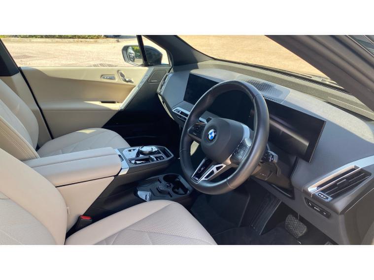 BMW iX 385kW xDrive50 M Sport 111.5kWh 5dr Auto Electric Estate, , Experience the future of driving with this stunning BMW iX xDrive50 M Sport, finished in sophisticated Black Sapphire Metallic and paired with the elegant Interior Design Atelier Oyster Seats. Sitting confidently on striking 21 inch alloy wheels, this all-electric SUV delivers a commanding road presence matched by exceptional performance and refinement.