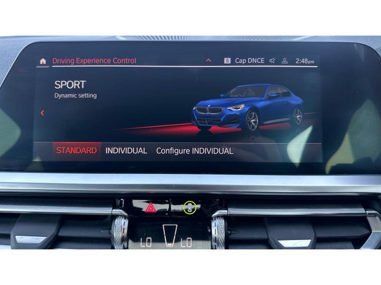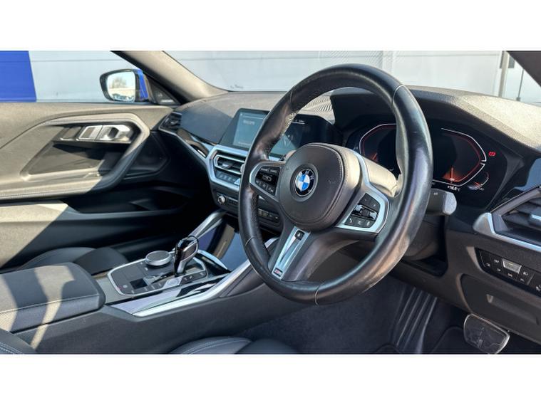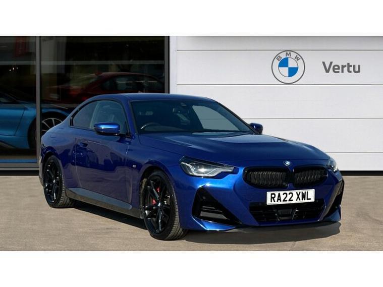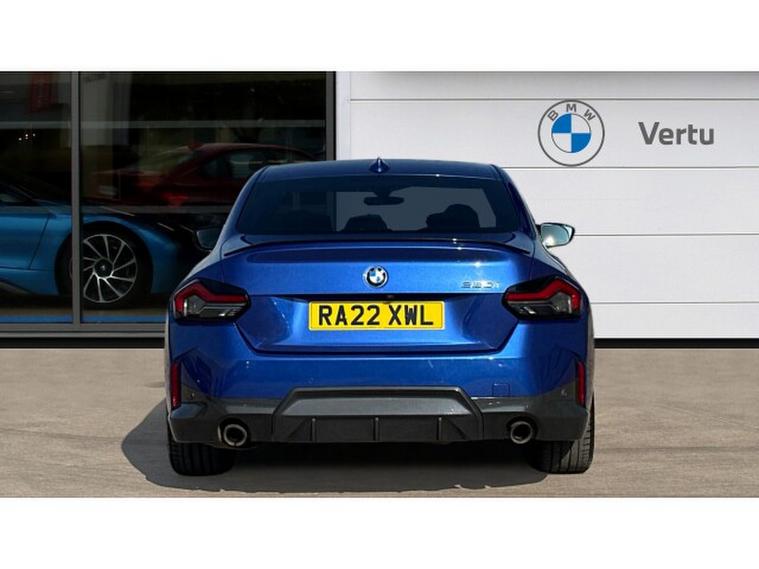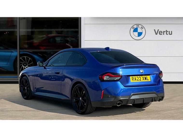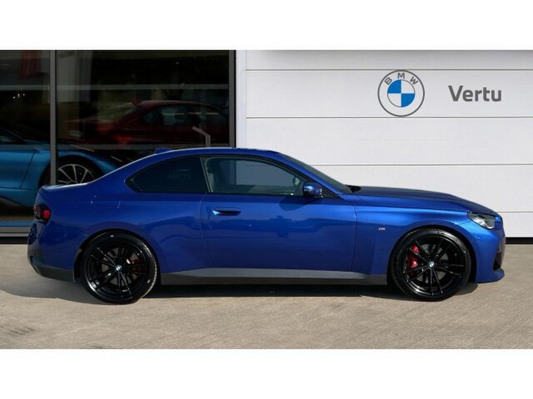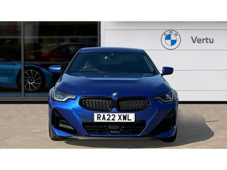 BMW 2 Series 220i M Sport 2dr Step Auto Petrol Coupe, , Presented in striking Portimao Blue, this 2022 BMW 220i M Sport Coupe perfectly blends dynamic styling with everyday practicality. With 46, 363 miles covered, this sleek coupe offers the engaging driving experience BMW is renowned for, paired with a refined and modern interior. Inside, the cabin features Alcantara/Sensatec Black seats with distinctive Blue stitching, creating a sporty yet premium atmosphere that complements the cars athletic character. The 2 Series Coupe delivers sharp handling, impressive efficiency, and a driver-focused design that makes every journey enjoyable.