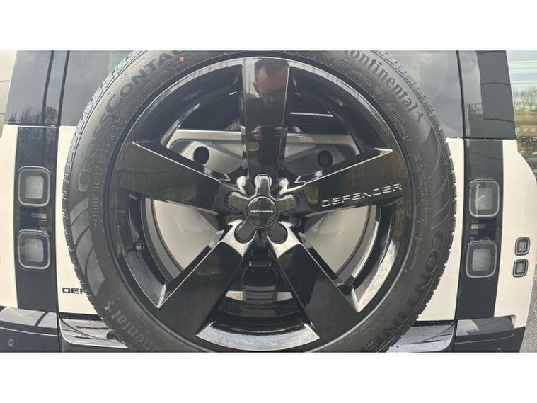 Underneath, the advanced Air Suspension Pack transforms every journey, adapting seamlessly to the terrain for an effortlessly smooth and composed ride whether youre cruising motorways or exploring the unbeaten track. The 22 Gloss Black Style 5098 alloys and matching 22 full-size spare wheel ensure the Defender not only looks the part but is always ready for adventure.