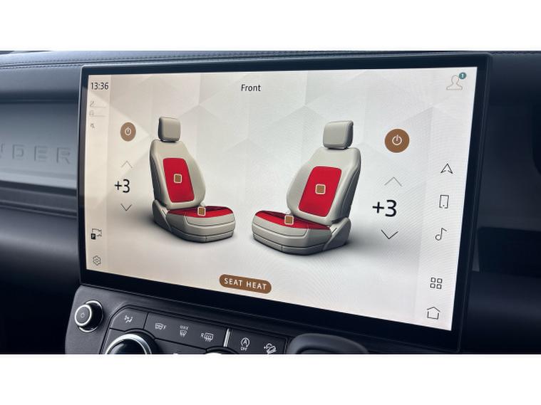 From the moment you step inside, the Defender 90 exudes refinement and purpose. The Ebony Windsor Leather seats offer supreme comfort and support, while the elevated driving position delivers an unrivalled sense of control. Every surface, switch, and detail reflects Land Rovers dedication to craftsmanship and durability, blending rugged authenticity with contemporary design.