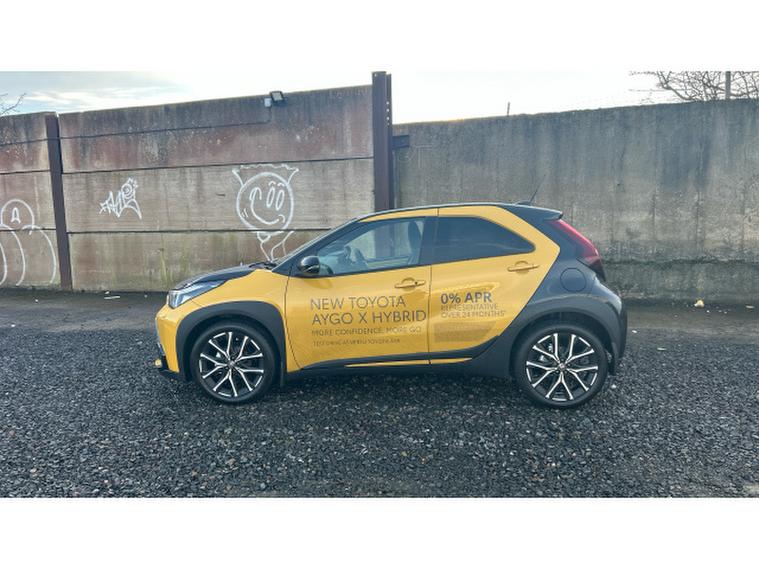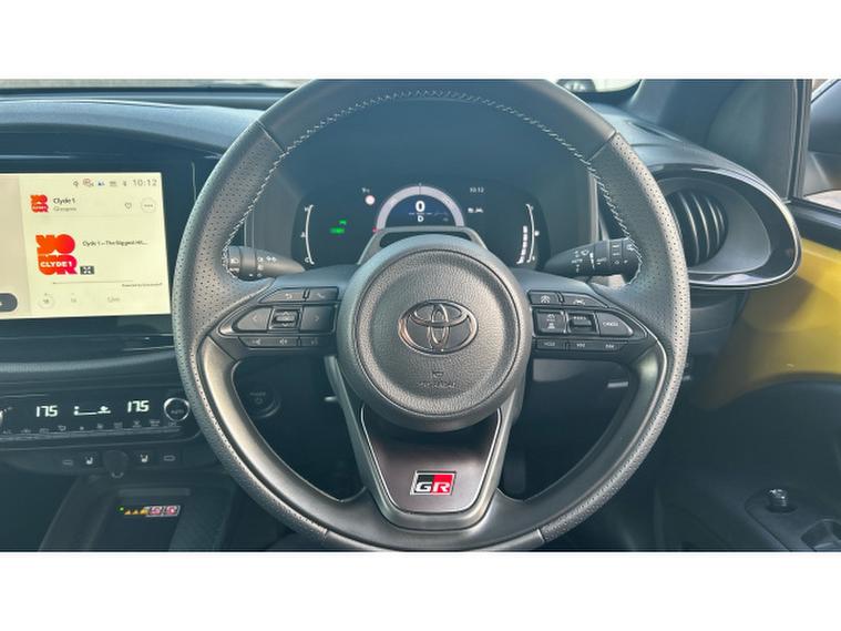 Toyota Aygo X 1.5 Hybrid GR Sport 5dr CVT Hybrid Hatchback, , Im delighted to present this Toyota Aygo X GR SPORT, a fantastic opportunity to own a bold and unmistakably styled hybrid-inspired city car. Finished in striking Mustard Bi-Tone paintwork, it really stands out, complemented by eye-catching LED headlamps, push-button start and the convenience of a wireless mobile phone charger.
