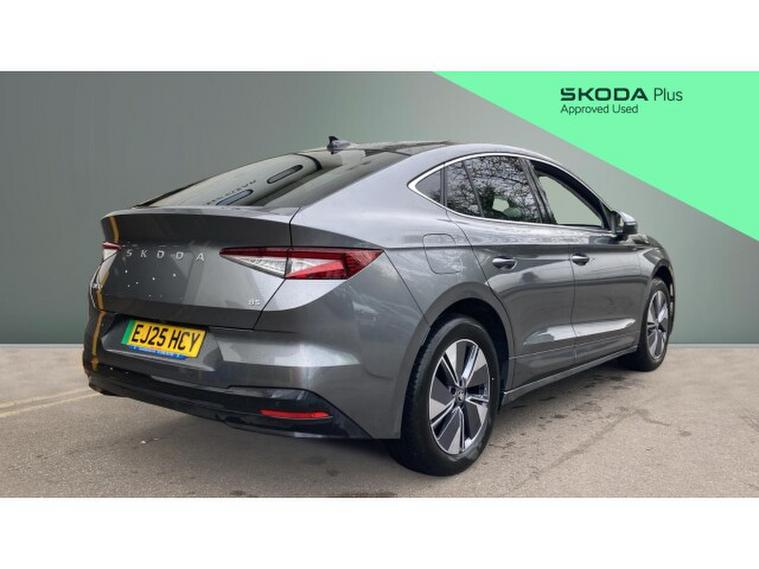 Skoda Enyaq 210kW 85 Edition 82kWh 5dr Auto Electric, , This 2025 Skoda Enyaq 85 Edition is a remarkable example, having had only one owner from new and benefiting from Skoda manufacturer approval. This electric vehicle boasts an impressive 82 kWh battery, offering a maximum range of 365 miles, perfect for longer journeys. Convenience is key with features like wireless charging with cooling, a Plus Package including LED headlights and memory seats, and advanced keyless entry with walk away locking. You'll also appreciate the ease of parking with front and rear sensors, and the comfort of a heated two spoke leather multi function steering wheel.