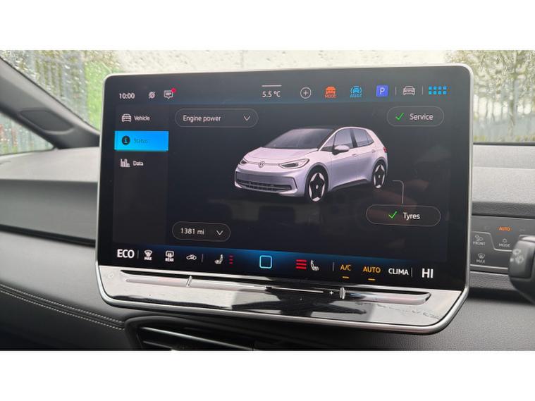 The Driver Assistance Pack further improves safety and confidence, offering Park Assist Plus, rear-view camera, Front Assist with proactive passenger protection, keyless entry and start, and front and rear parking sensors. Inside, the ID.3 provides a clean, modern and spacious cabin with ambient lighting and intuitive digital controls, creating a relaxed and enjoyable driving environment.