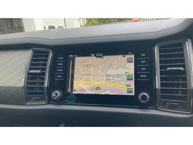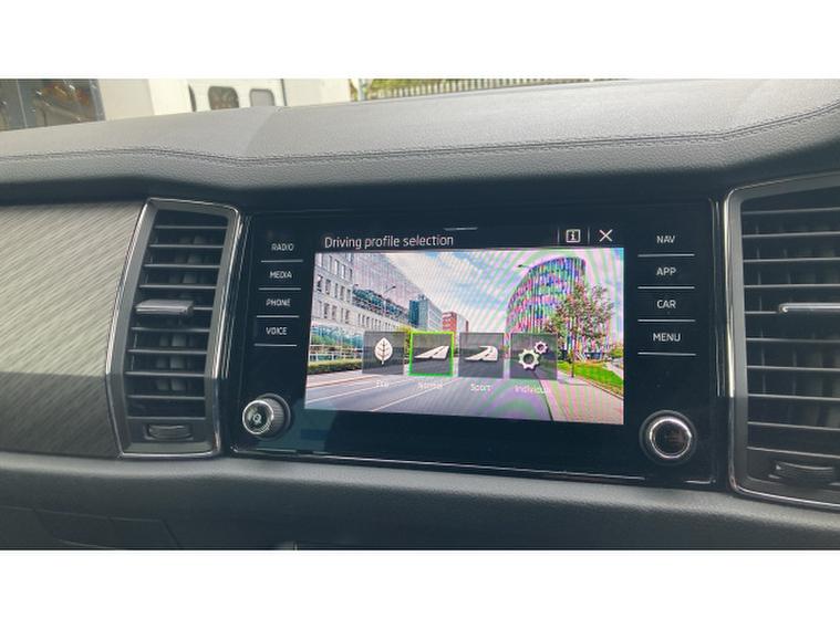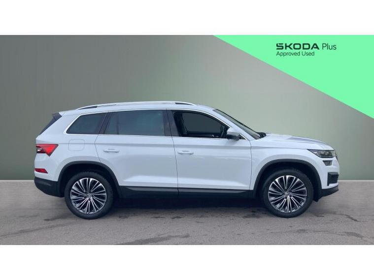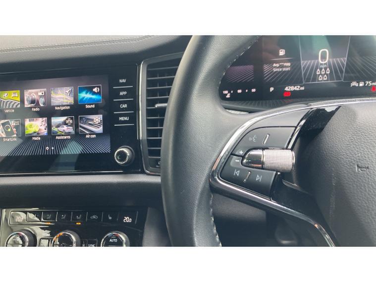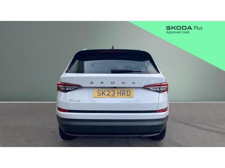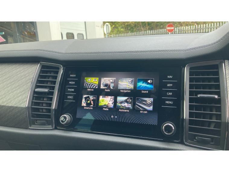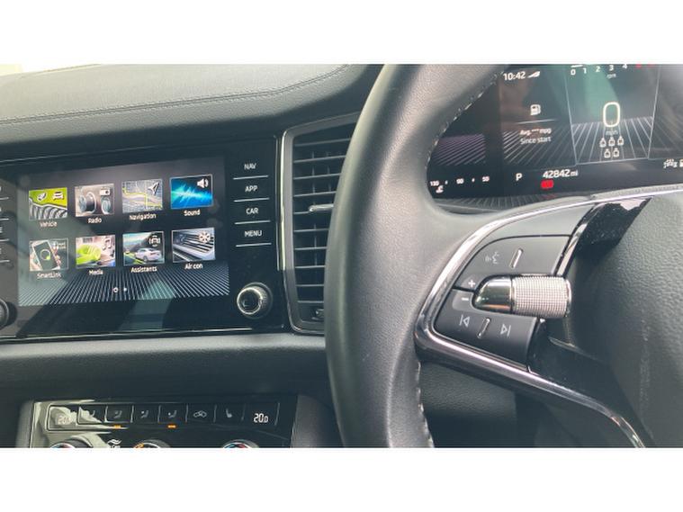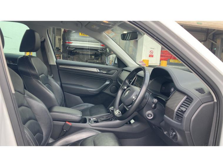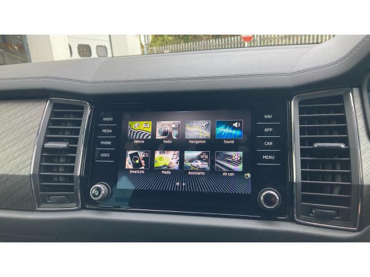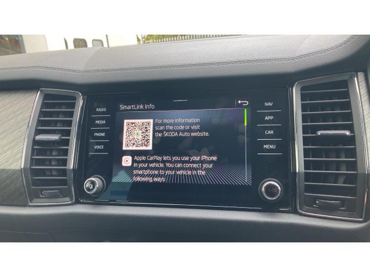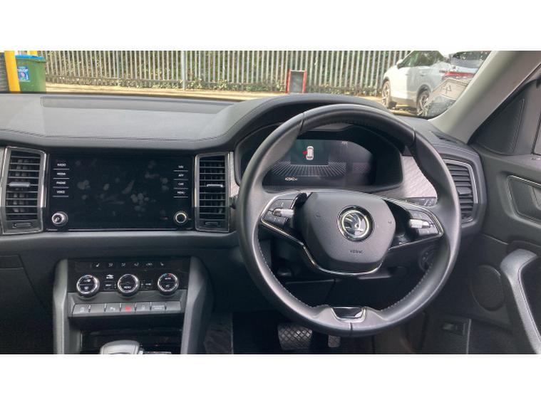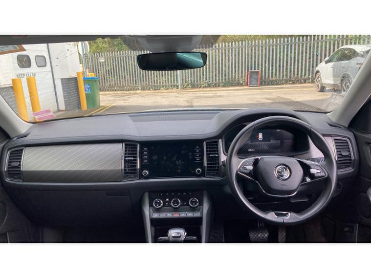 Skoda Kodiaq 1.5 TSI SE L Executive 5dr DSG [7 Seat] Petrol Estate, , This 2023 Skoda Kodiaq TSI SE L Executive is a superb example, having had only one owner since new. This seven seat SUV is powered by an efficient 1.5 litre petrol engine and meets Euro 6 emissions standards. It comes equipped with a host of desirable features, including KESSY keyless entry and start, wireless phone charging, and SmartLink compatibility for seamless integration with Android Auto and Apple CarPlay. The SE L Executive trim also boasts Dual Zone Climate Control with a humidity sensor, ensuring comfort for all occupants, and advanced Full LED Matrix Headlights with an Adaptive Front Light System for optimal visibility in all conditions.
