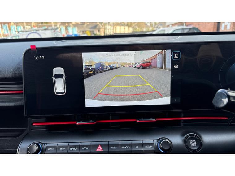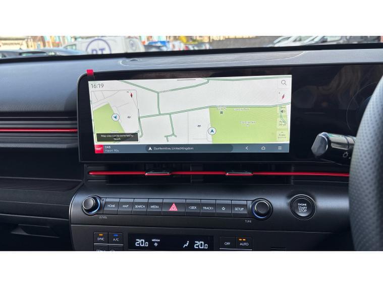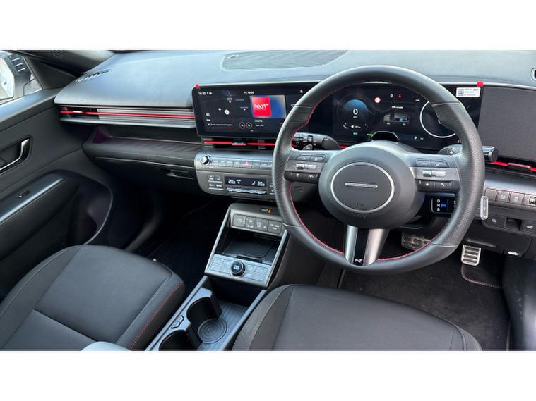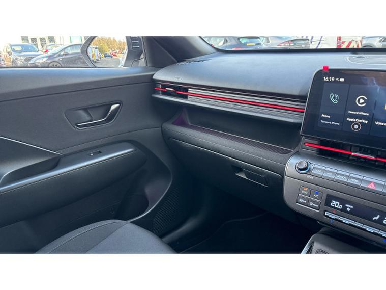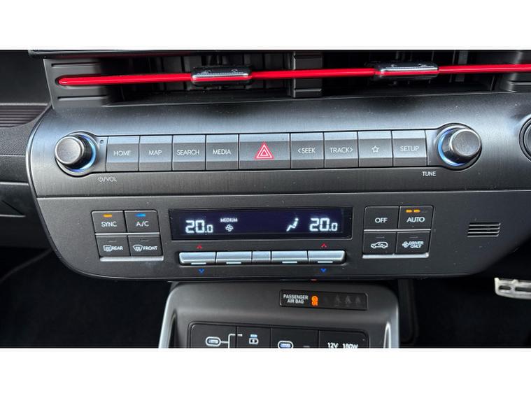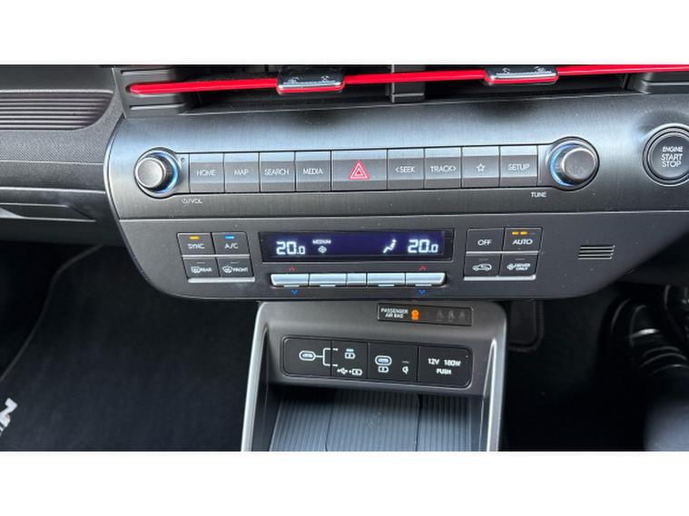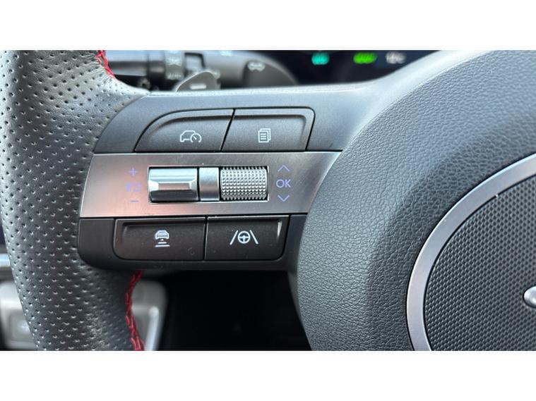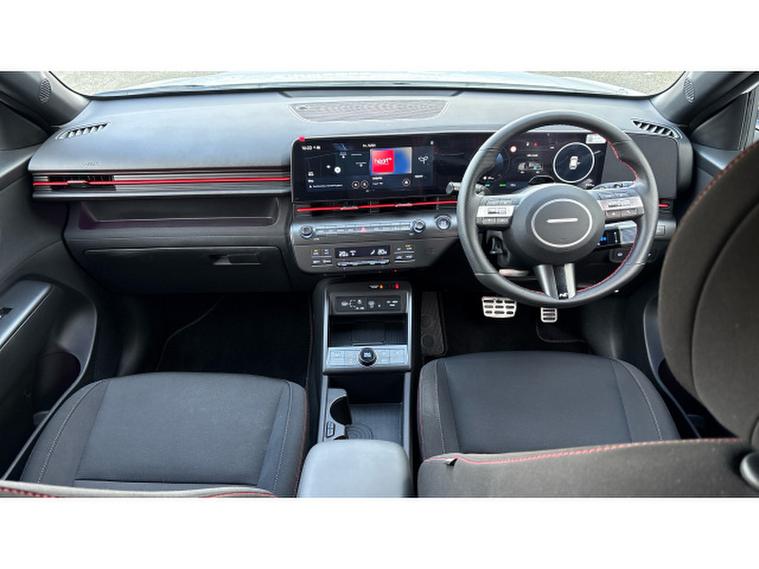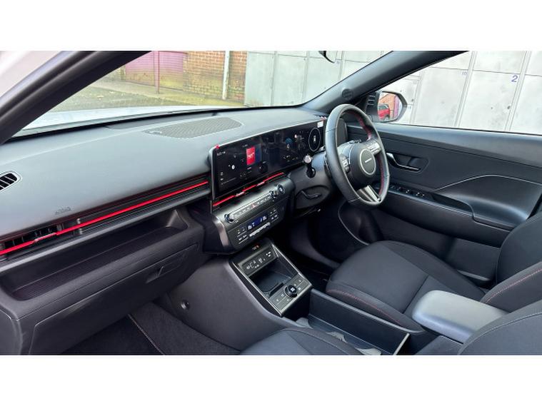 The N Line specification adds sporty styling and a more dynamic feel with distinctive N Line exterior details, stylish alloy wheels and a driver-focused interior with sports seats and contrast stitching. Inside, the Kona features a modern digital cockpit with twin digital displays, touchscreen infotainment system with Apple CarPlay and Android Auto, satellite navigation, reversing camera with parking sensors, climate control and adaptive cruise control along with a wide range of advanced driver assistance systems.
