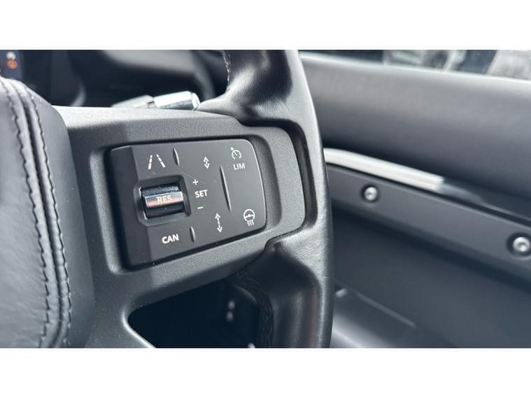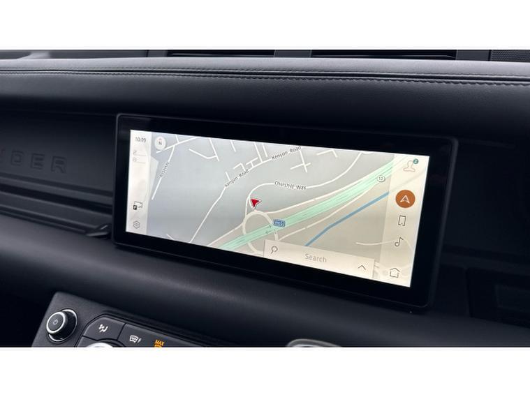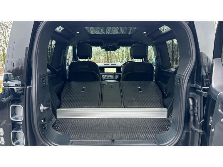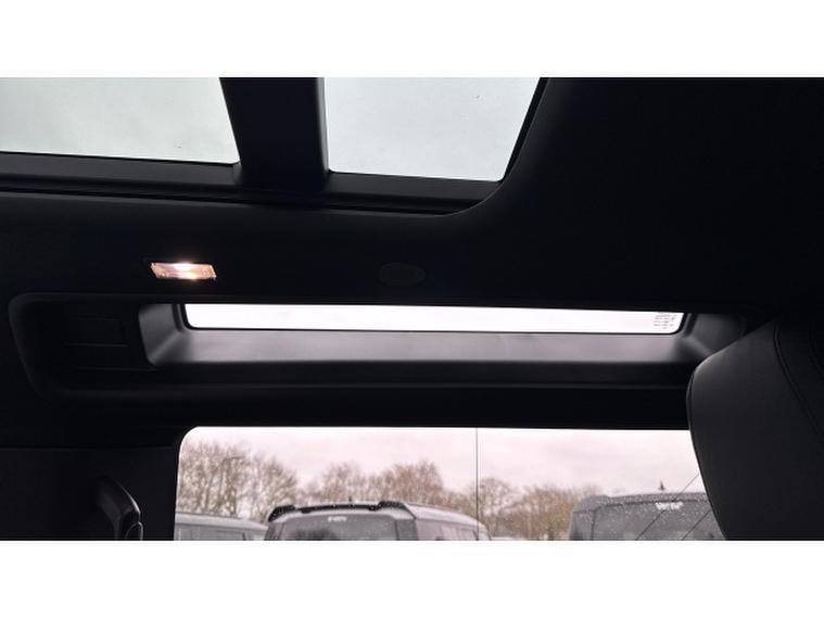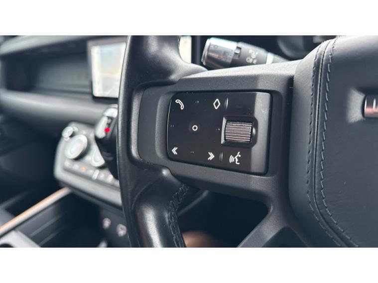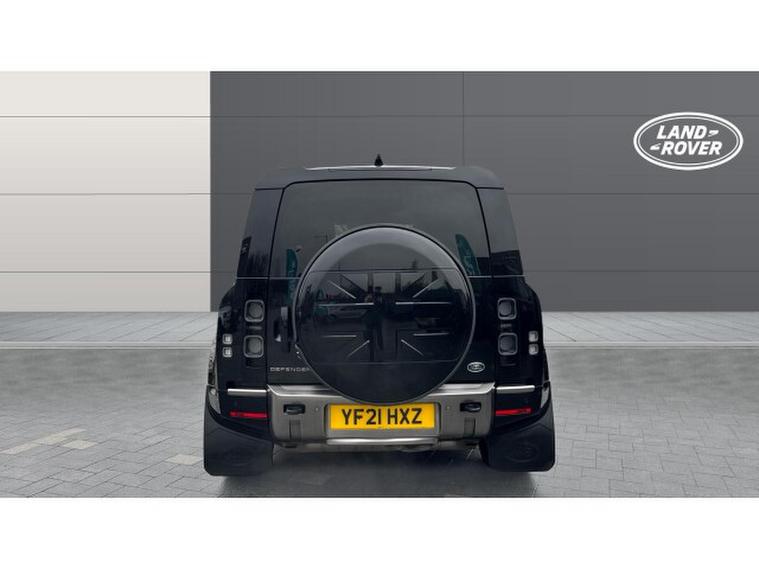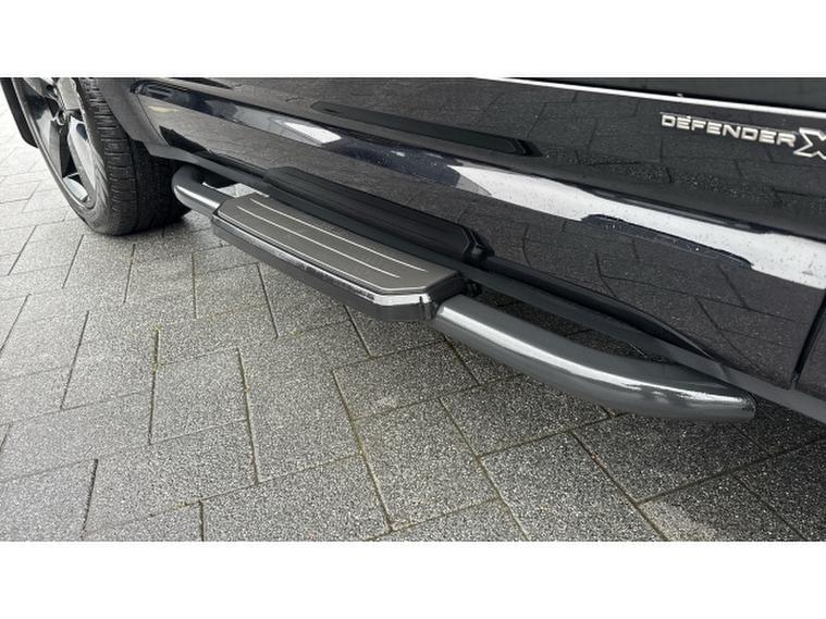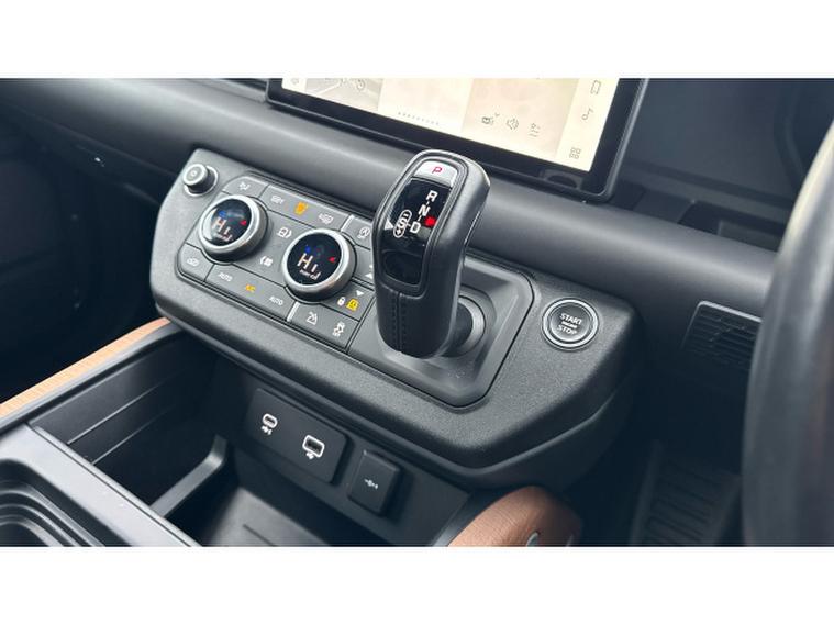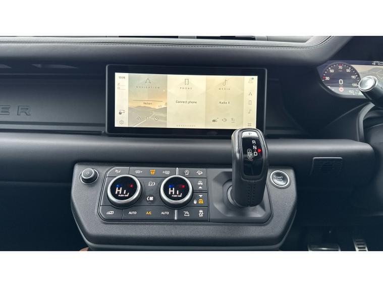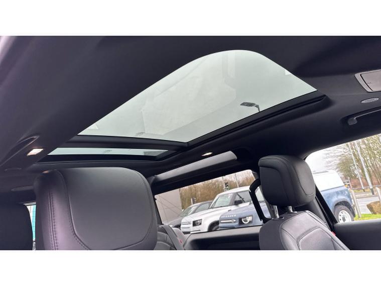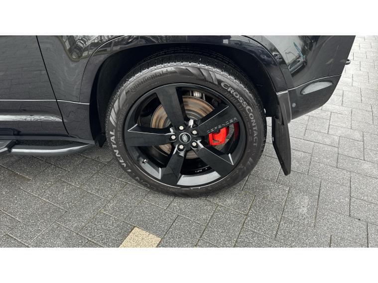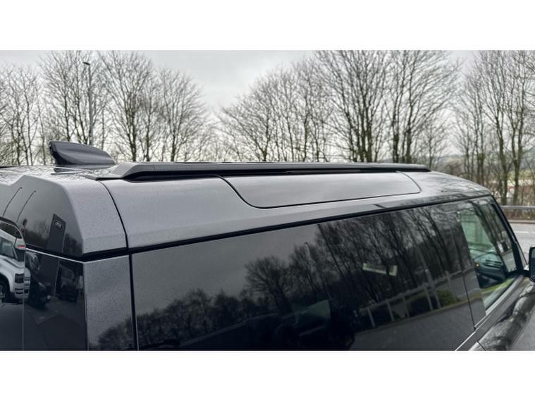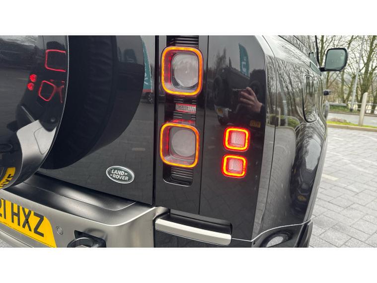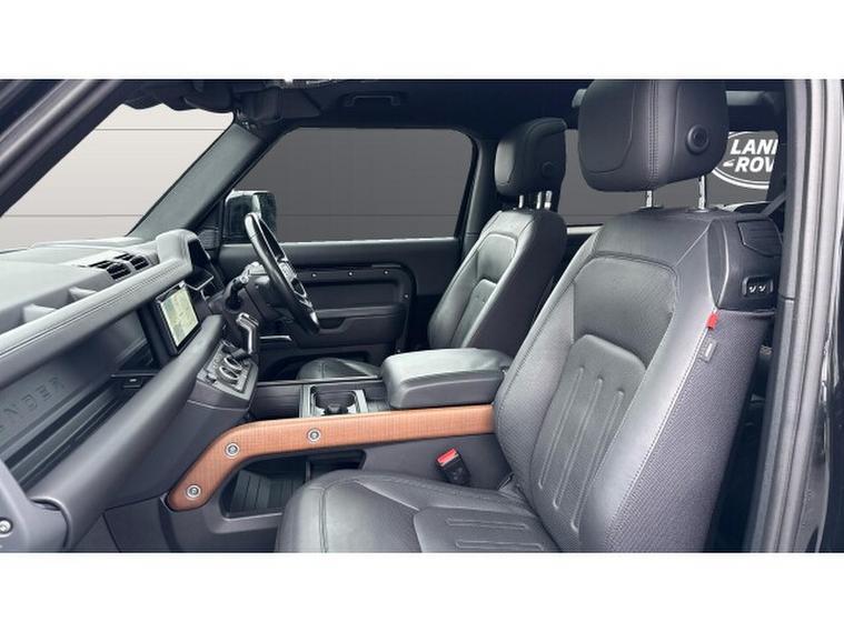 Land Rover Defender 3.0 P400 X 90 3dr Auto Petrol Estate, , Bold, powerful and unmistakably distinctive, this Land Rover Defender 90 P400 X in Santorini Black represents the model at its most refined and performance focused. The deep black finish enhances its strong, architectural lines, while 22 inch gloss black alloy wheels and privacy glass add a commanding and contemporary edge to its purposeful stance.