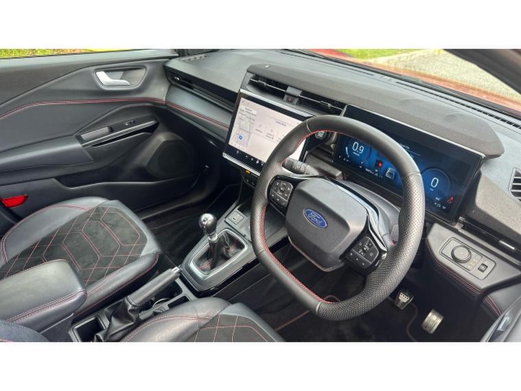 Inside, the Puma offers a premium and driver-focused cabin with part-leather sports seats, a flat-bottom steering wheel and high-quality finishes throughout. The advanced infotainment system includes a touchscreen display with smartphone integration, navigation, and Bluetooth connectivity, ensuring you stay connected and entertained on every journey. A premium sound system and digital driver display further enhance the driving experience.