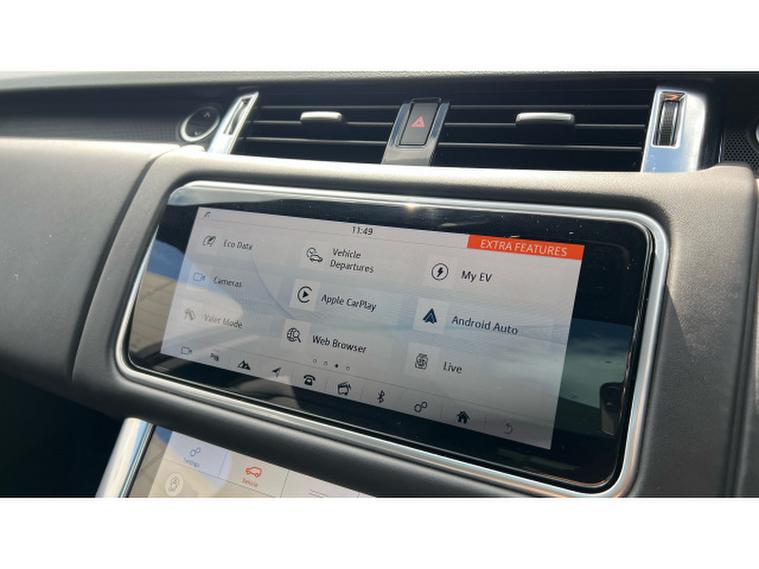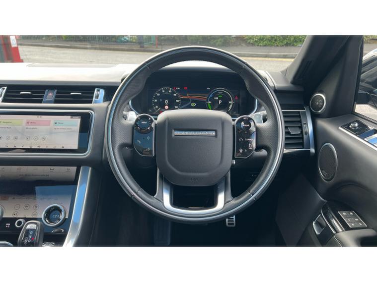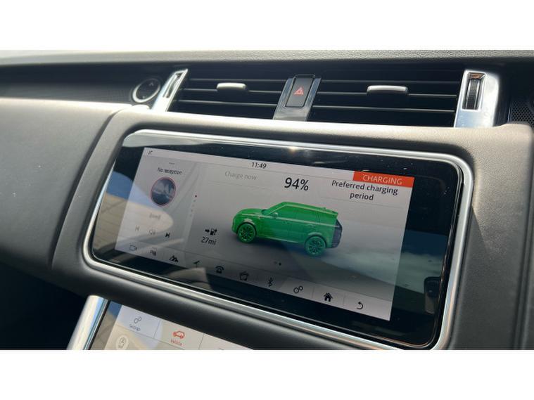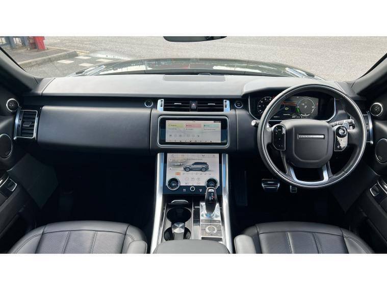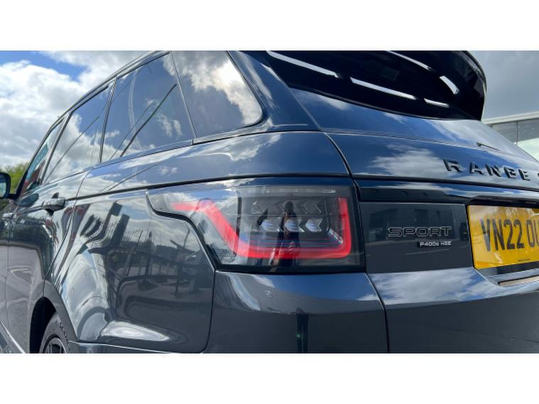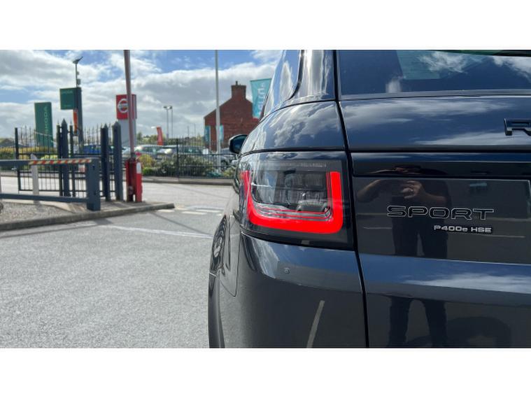 Land Rover Range Rover Sport 2.0 P400e HSE Dynamic Black 5dr Auto Estate, , This 2022 Land Rover Range Rover Sport P400e HSE Dynamic Black boasts exceptionally low mileage for its age, having covered just 22, 239 miles. This impressive plug in hybrid model features a 2.0 litre petrol engine paired with four wheel drive, meeting Euro 6 emissions standards. It comes equipped with the desirable Drive Pack, which includes Blind Spot Assistance, and auto dimming power fold heated door mirrors with memory and approach lights. The striking Narvik Black contrast painted roof complements the HSE Dynamic Black trim, and automatic headlights ensure optimal visibility. For seamless connectivity, it includes Apple CarPlay.