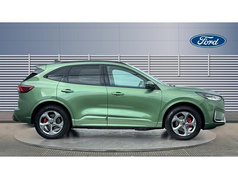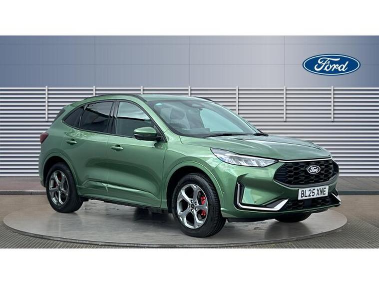Ford Kuga 2.5 PHEV ST-Line 5dr CVT Estate, , Gloucester Ford have this Ford Kuga 2.5 PHEV ST-Line finished in the exclusive Bursting Green. This Kuga 2.5 PHEV ST-Line in Bursting Green is a superb example of modern SUV design, combining bold styling, advanced hybrid efficiency, and cutting-edge technology into one highly desirable package. The vibrant Bursting Green finish gives the Kuga a distinctive and energetic presence, perfectly complementing the sporty ST-Line body styling and athletic stance. At its core, the 2.5 plug-in hybrid powertrain delivers an excellent balance of performance and efficiency. With smooth automatic power delivery and the ability to drive on electric power alone for shorter journeys, it offers both responsive driving and reduced running costs. This makes it ideal for a mix of city commuting and longer trips, giving drivers flexibility without compromise. Inside, the cabin is both refined and technology-focused. The inclusion of SYNC 4 transforms the driving experience with its large 13.2-inch touchscreen, seamless smartphone connectivity, and over-the-air updates, ensuring the system stays modern and intuitive. The interface is crisp, responsive, and designed to keep everything easily accessible while on the move. Practicality and safety are equally impressive. Front and rear parking sensors, along with a full 360-degree camera system, provide complete confidence when manoeuvring in tight spaces. These intelligent features offer a comprehensive view of the surroundings, making parking and low-speed driving stress-free and precise. The ST-Line trim enhances the driving experience further with sports suspension, stylish interior detailing, and supportive seats, creating a perfect blend of comfort and dynamic handling. Despite its sporty edge, the Kuga remains spacious and versatile, with flexible seating and generous boot capacity for everyday usability. Overall, the Ford Kuga 2.5 PHEV ST-Line in Bursting Green stands out as a stylish, efficient, and technology-rich SUV that delivers an exceptional all-round driving experience.